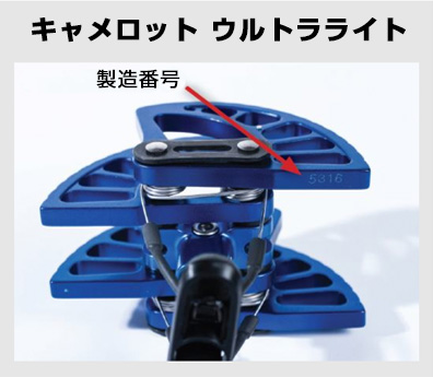 製造番号5309から6061のみがリコールの対象となります。該当製造番号のキャメロット ウルトラライトをお持ちの方は後述の手順に従って製品を点検してください。 |