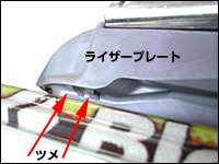 写真4: フロントケーブルがズレて、ライザープレートからはみ出した状態 |