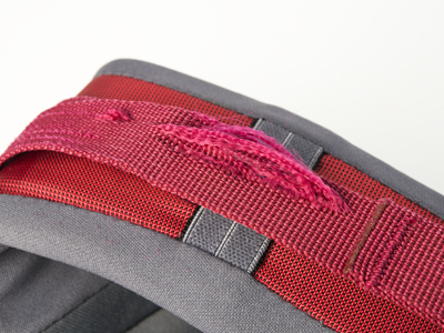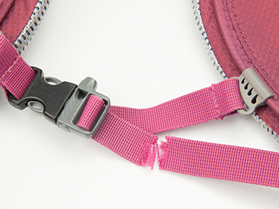 製品の各部に使用されている赤色ストラップが大きくほつれたり、小さな負荷でも破断する場合があります。