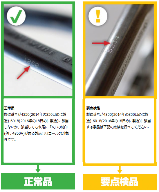リコール対象品の点検項目は下記の4点です。点検手順は図で説明されています。