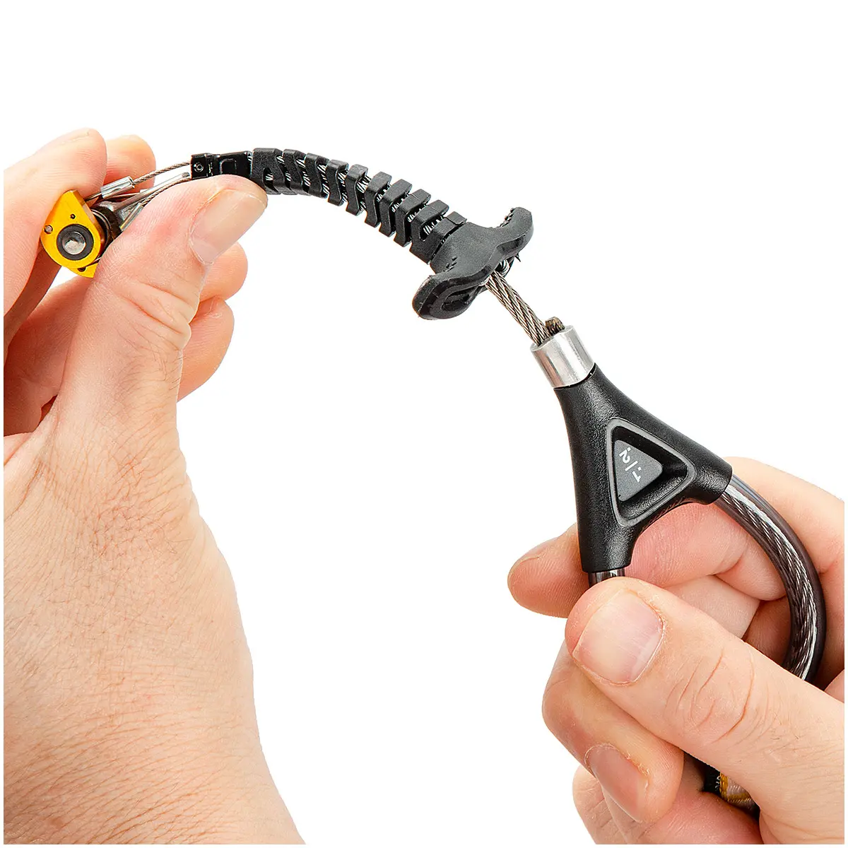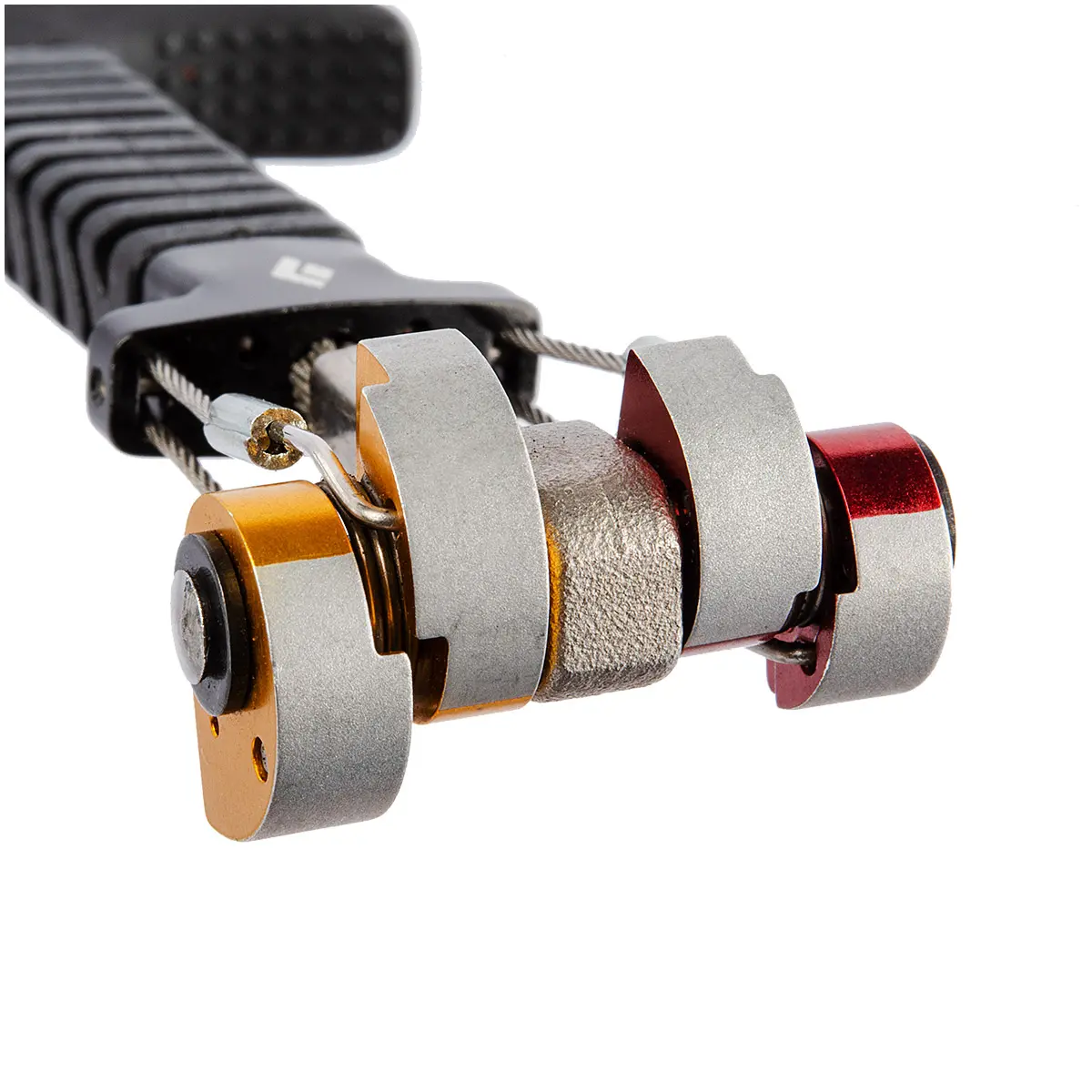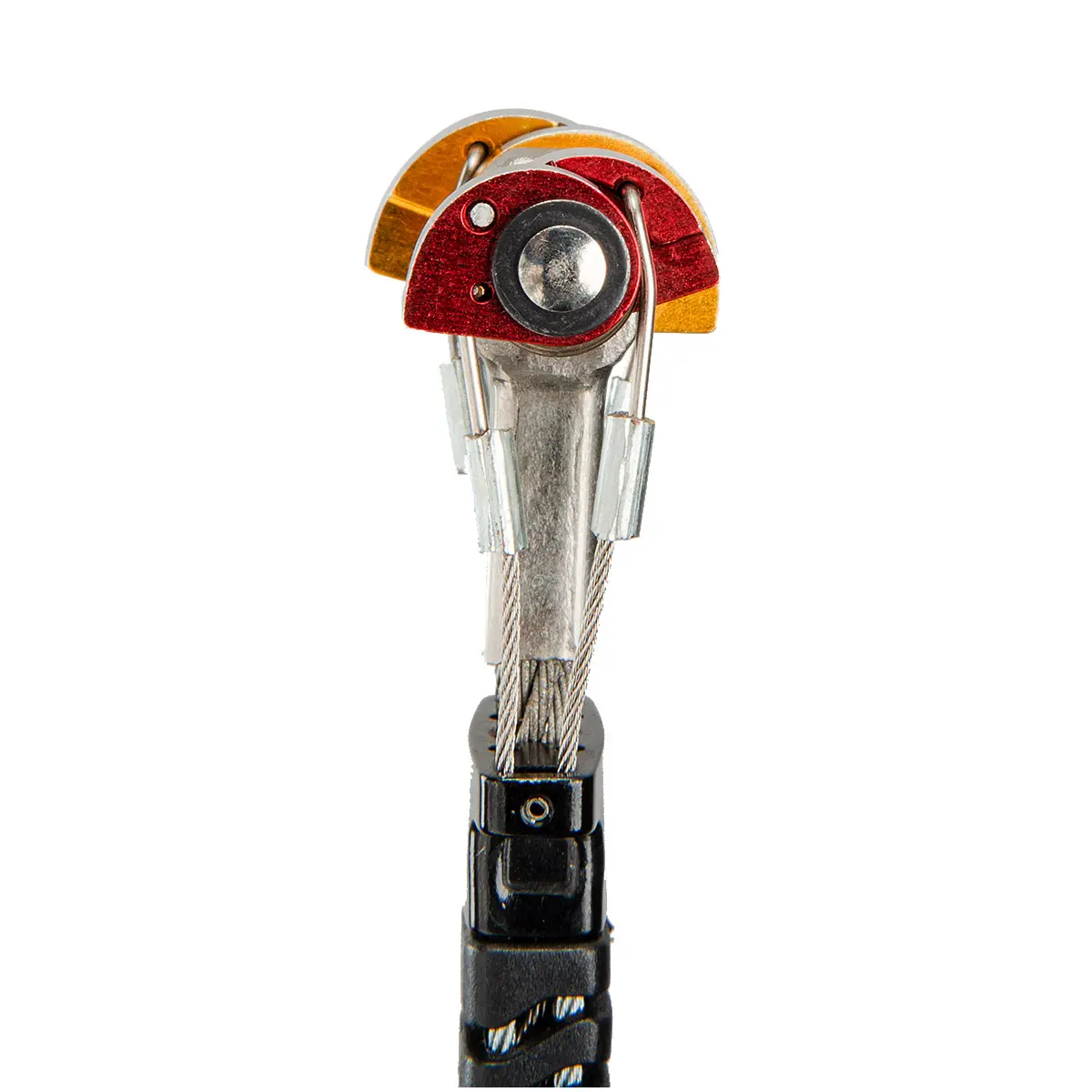 異なるサイズのカムを組み合わせたオフセットタイプのキャメロットZ4。ピトンスカーやフレアクラックにも効かせやすく、通常のZ4に加えることで、プロテクションセットの可能性を拡げます。セット時は曲がりにくく、セット後にはフレキシブルなのが最大の特長。4本のトリガーワイヤーがステムワイヤーを取り囲むリジッドフレックストリガーを採用。トリガーを引いてトリガーワイヤーにテンションがかかっている間は曲がりにくく、スムーズにセットできます。#0.3/0.4~#0.5/0.75は2本のステムケーブルをひねったオムニフレックスケーブルを採用。どの方向にも均等に曲がりやすく、どの方向からの動きも柔軟に受け止めます。ヘッド幅はキャメロットC3と同等ながらカムローブは4枚で、コンパクトながら安定性に優れます。