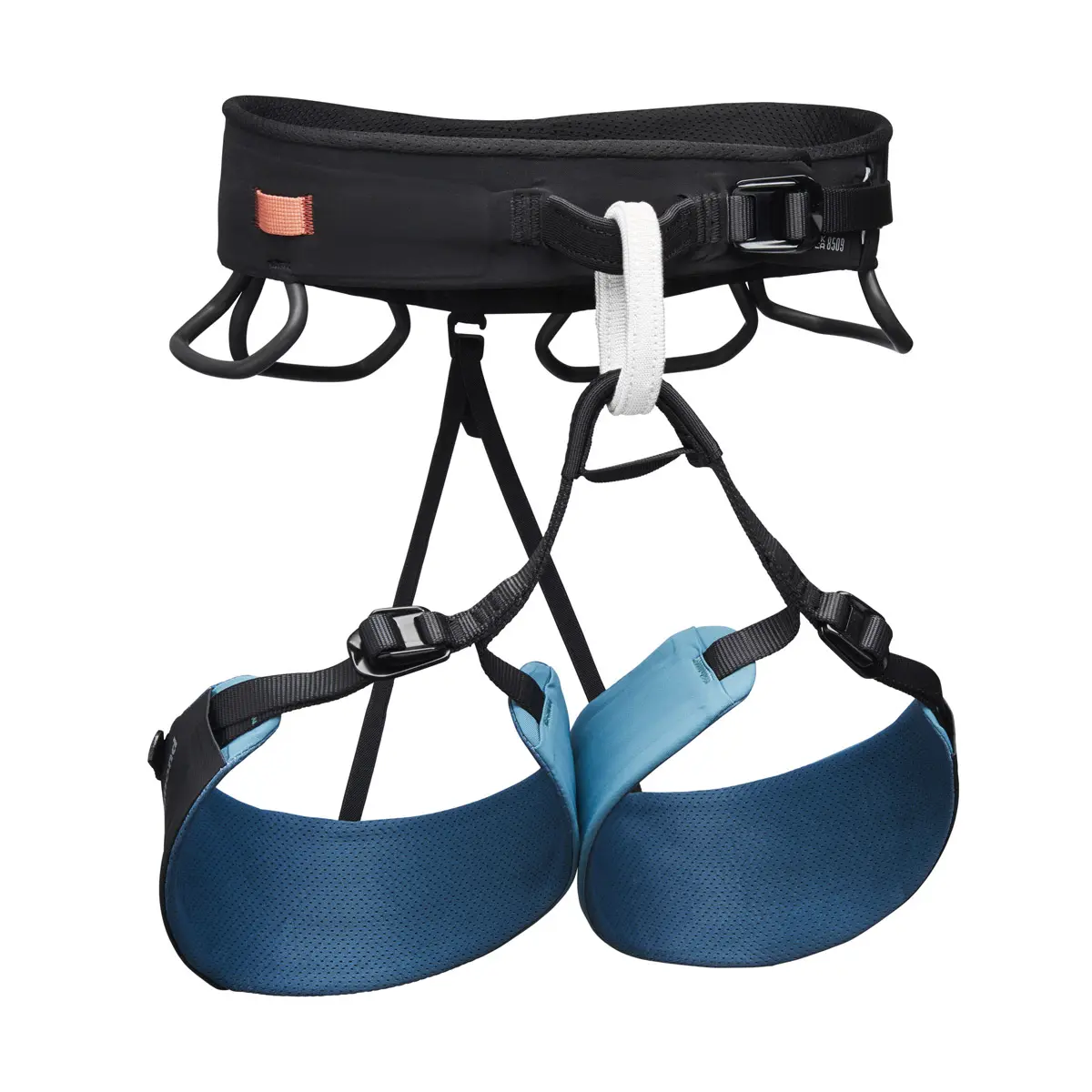 マルチピッチやビッグウォール、ウィンタークライミングなど長距離・長時間のクライミングでの快適性を追求したオールシーズン対応ハーネス。15本のクイックドローをラッキングできる大型ギアラックを4個装備。アイスクリッパースロットを4個備え、アイスクライミングにも対応。シームレスなインフィニティービレイループを採用、ビレイ/ラペル時にバータックの段差で生じる引っ掛かりを解消しています。
