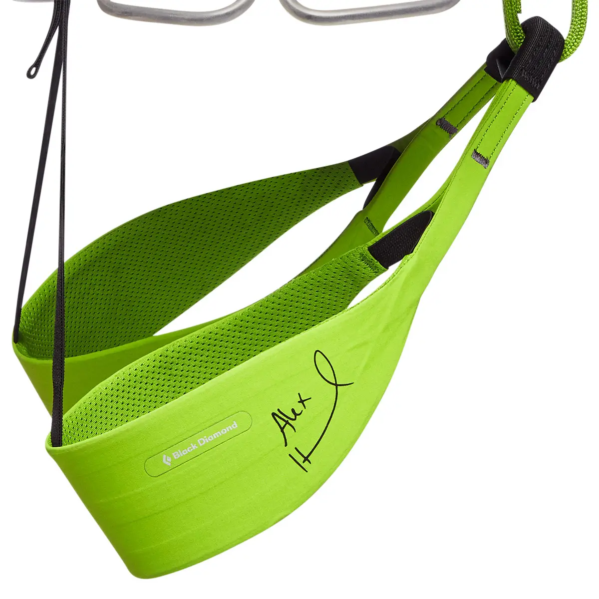 BDアスリート、アレックス・オノルドのシグニチャーハーネス。ロストアローオンラインストアでの限定販売です。彼が愛用するソリューションハーネスに特別カラーを施し、右レッグループにオノルドのサインをプリント。売上の一部は、太陽光発電の普及を啓蒙するオノルド・ファウンデーションに寄付されます。