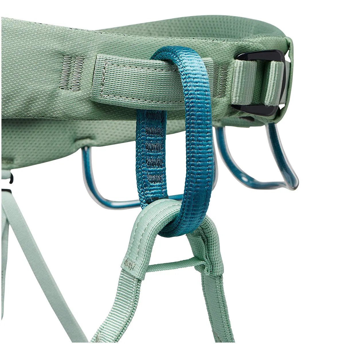 オールラウンドハーネス・モーメンタムのウィメンズモデルで、股上を長めに取ってあります。快適性の高いウエストベルト、レッグループを簡単に調整できるtrakFITアジャスター、4個のギアループなどを備えています。