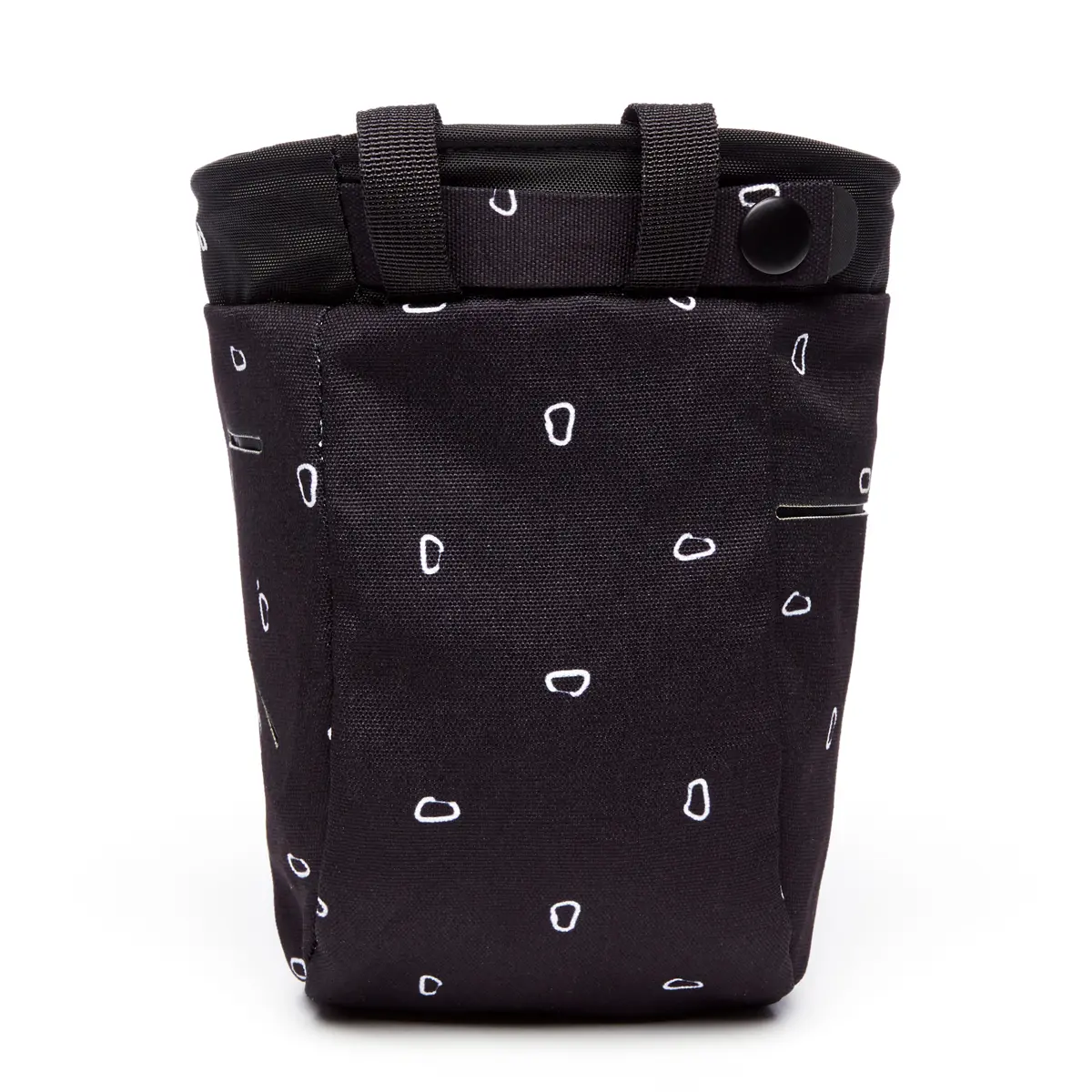 ジムでの使い勝手を追求したユニークなチョークバッグ。後方にスナップボタンを備え、ハーネスに直接クリップ可能(岩場向けにナイロンベルトも付属)。チョークボールを入れるメッシュポケットを内蔵。