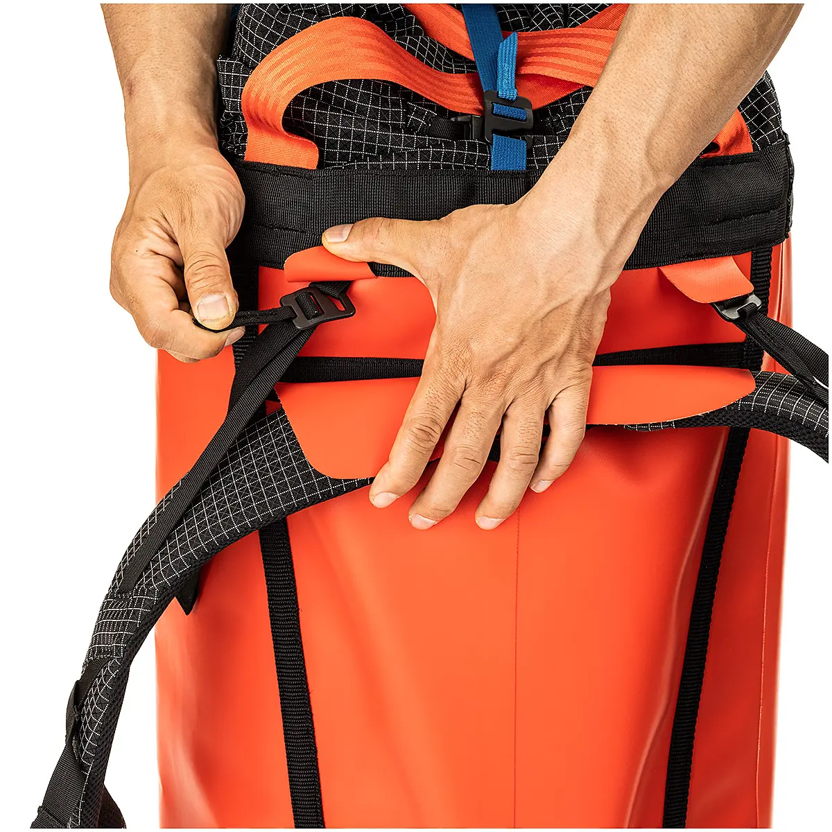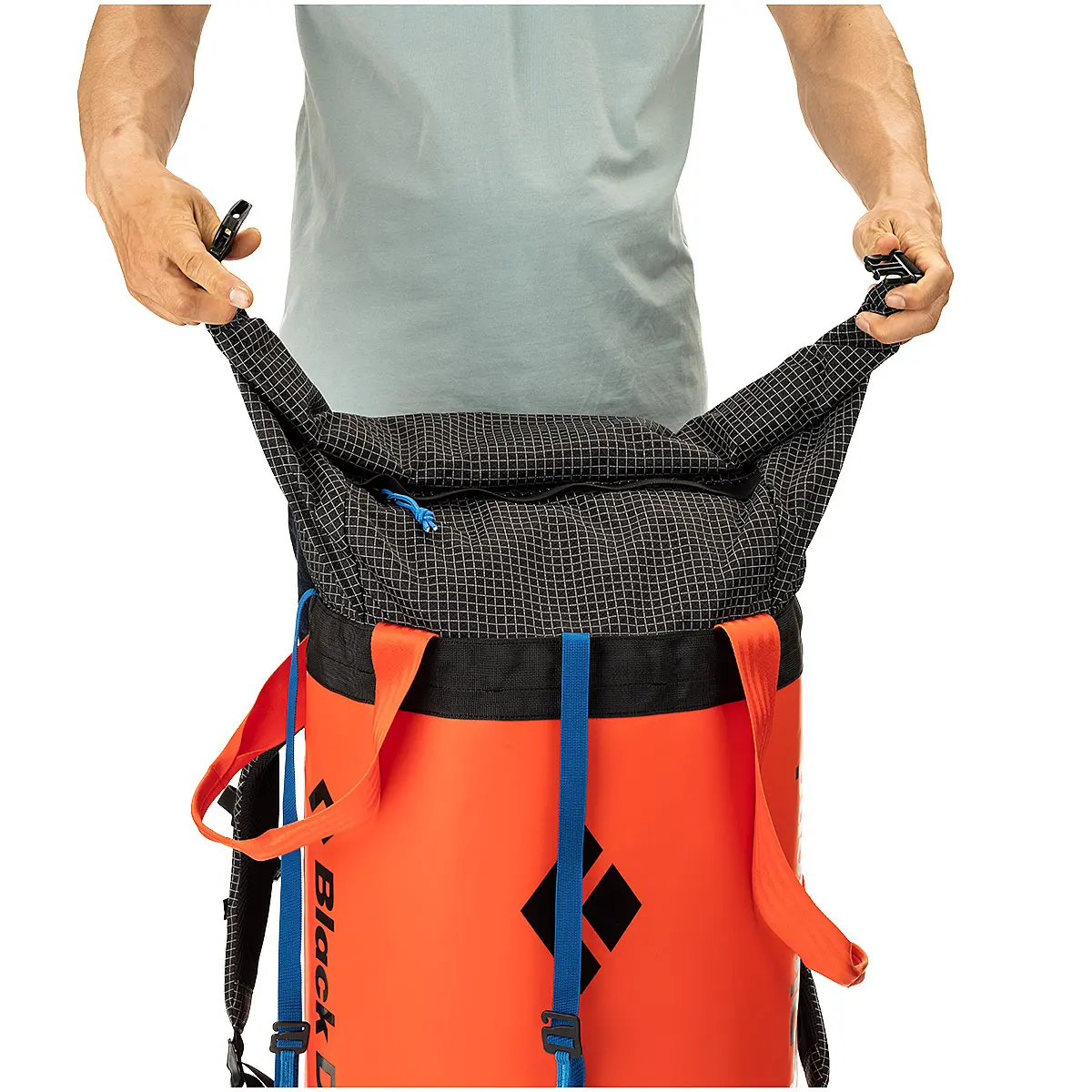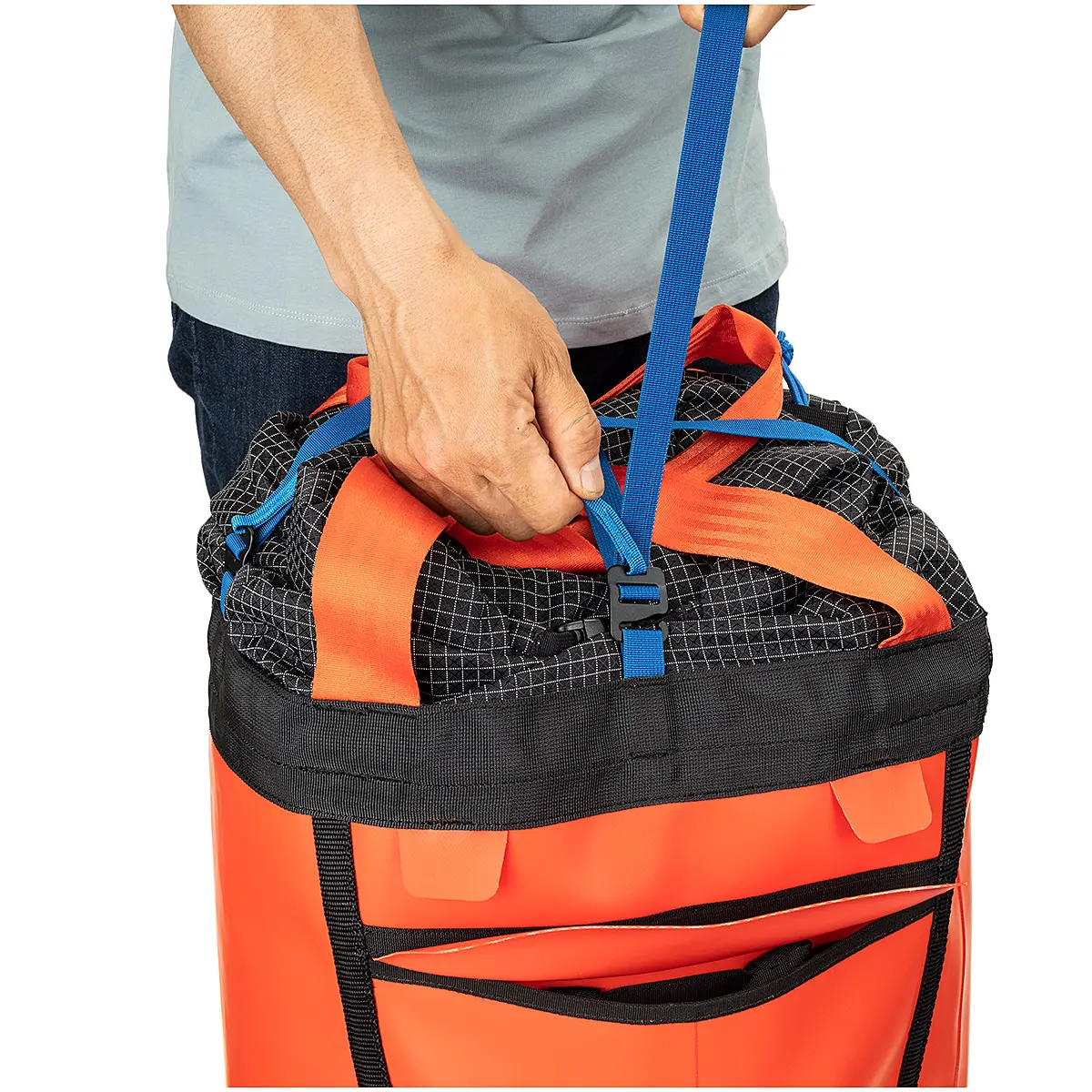 「バフィン」はエルキャピタンから極地のビッグウォールまで対応する大型モデル。ビッグウォールでの酷使に耐えるよう、コーティングがビニールからTPUに変更。フィット感が向上したショルダーベルトは、アプローチでの疲労を軽減します。入口はロールアップ式になり、荷物の出し入れがスムーズに。また、縁部分の段差が抑えられ、荷上げ時の引っ掛かりが軽減されています。