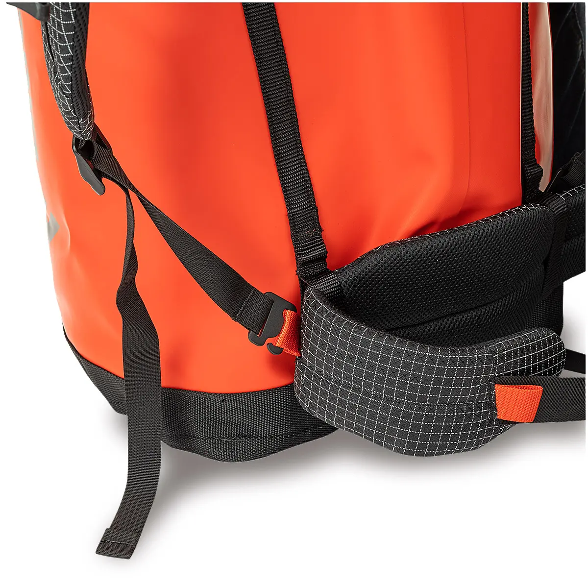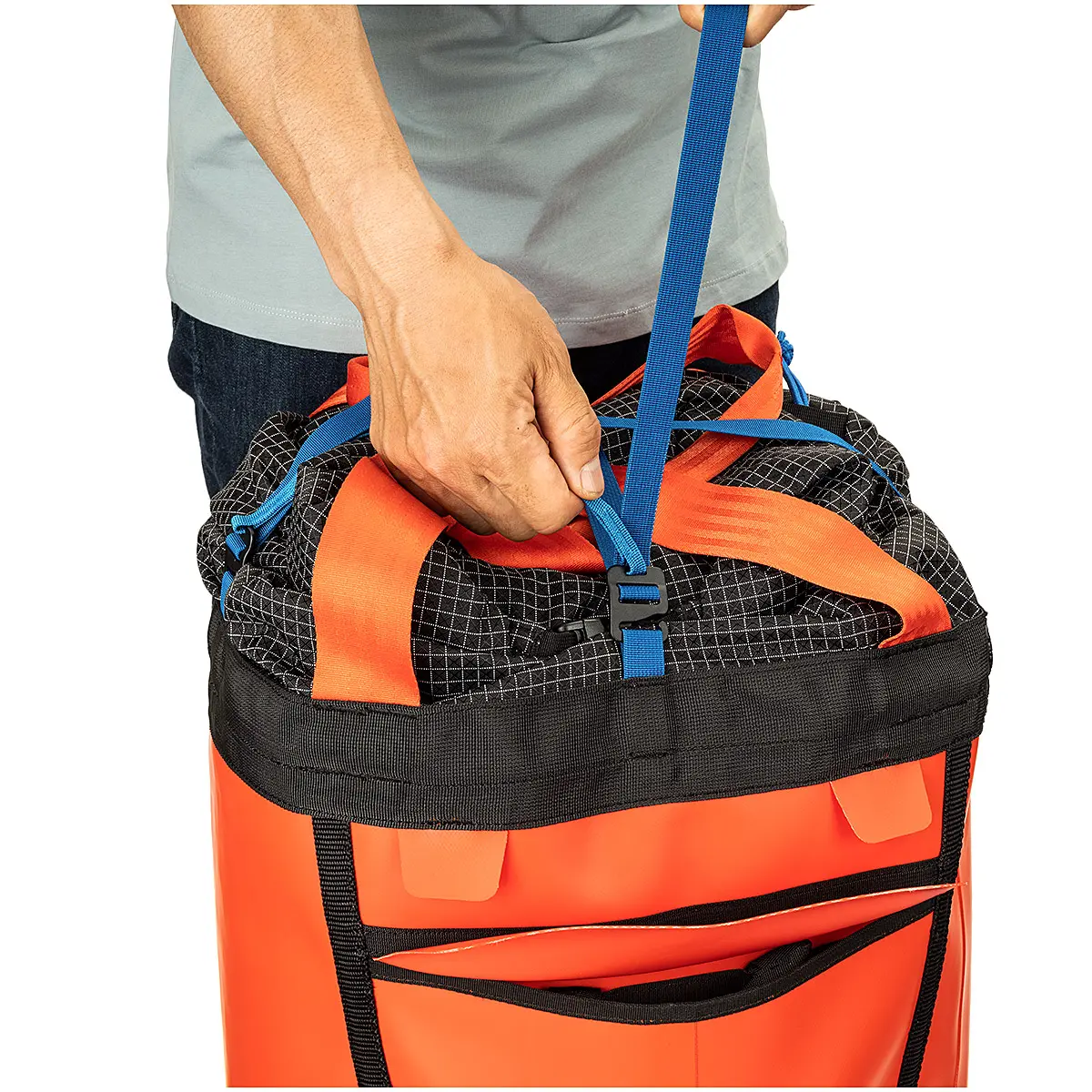 「デザート」はメインバッグの補助、追加に適した小型モデルです。ビッグウォールでの酷使に耐えるよう、コーティングがビニールからTPUに変更。フィット感が向上したショルダーベルトは、アプローチでの疲労を軽減します。入口はロールアップ式になり、荷物の出し入れがスムーズに。また、縁部分の段差が抑えられ、荷上げ時の引っ掛かりが軽減されています。