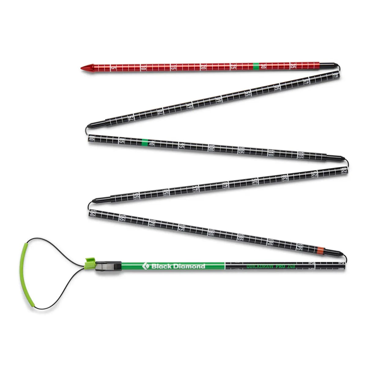 カラビナと同じ7075アルミ合金を使用したアルミシャフトに、プロービング中に伸びが少なく耐久性の高いステンレスケーブルを組み合わせ、耐久性と使いやすさを重視したUIAA認証アルミプローブ。2025/2026モデルはプローブの上下関係を素早く認識できるグラフィックにアップデート。