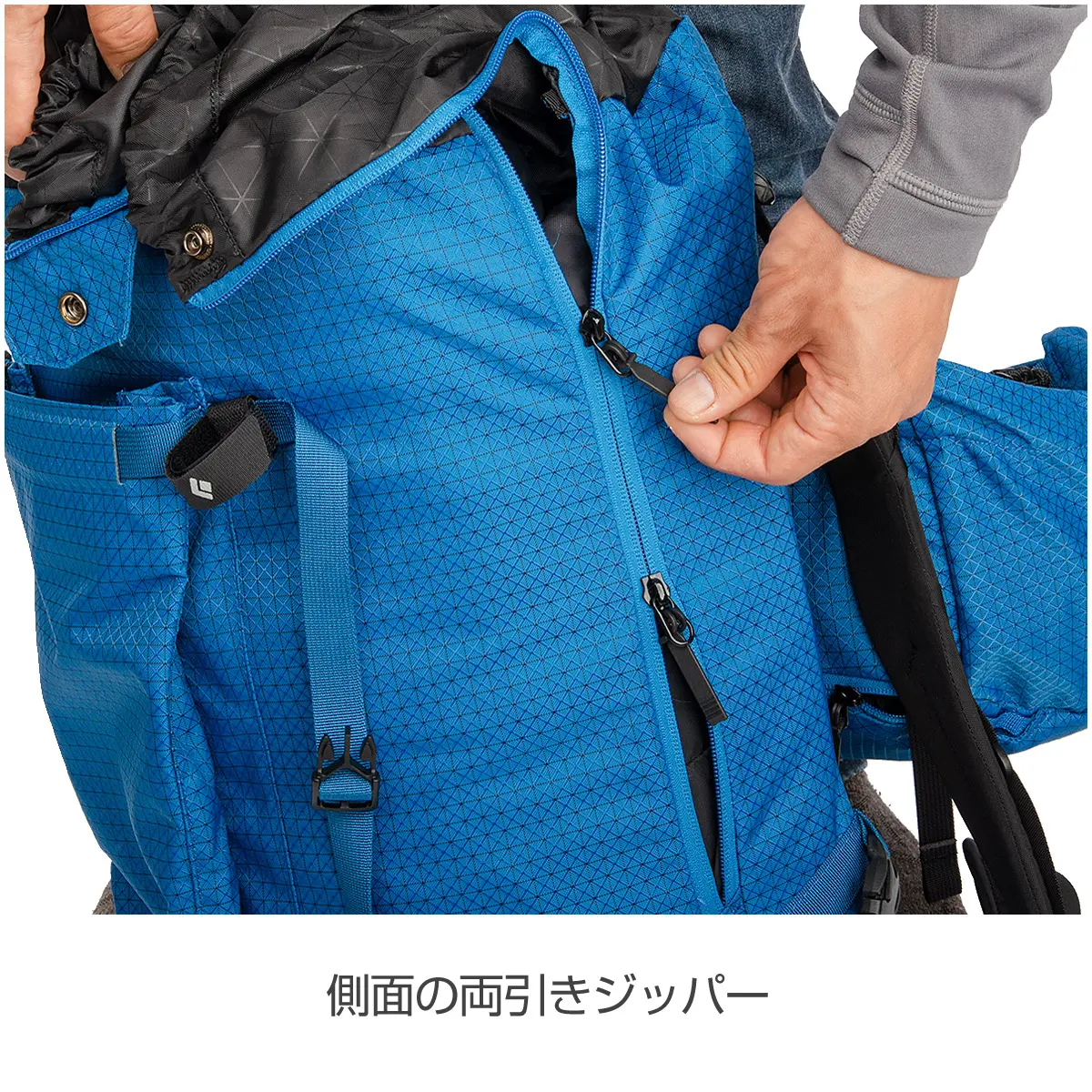 • 側面の両引きジッパー