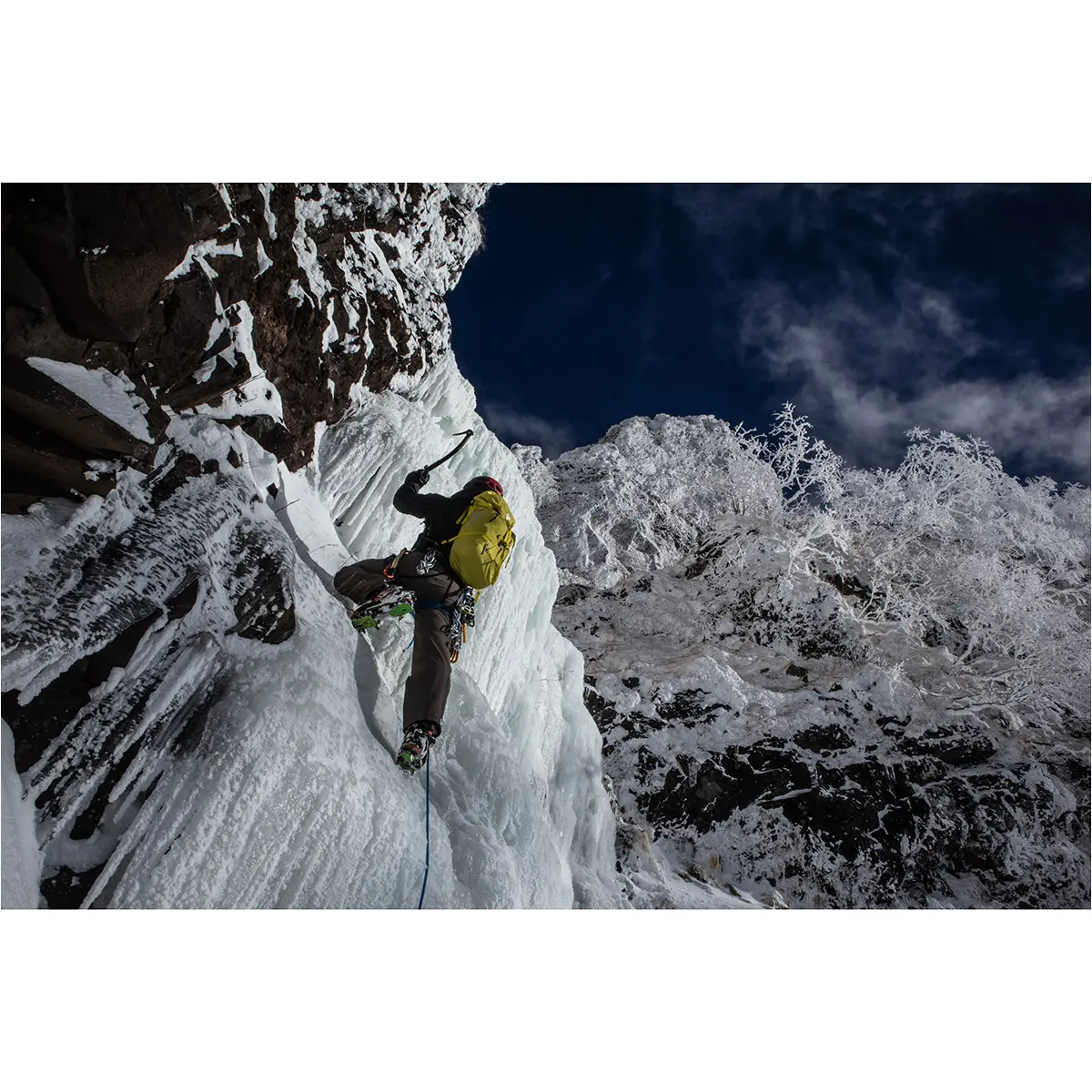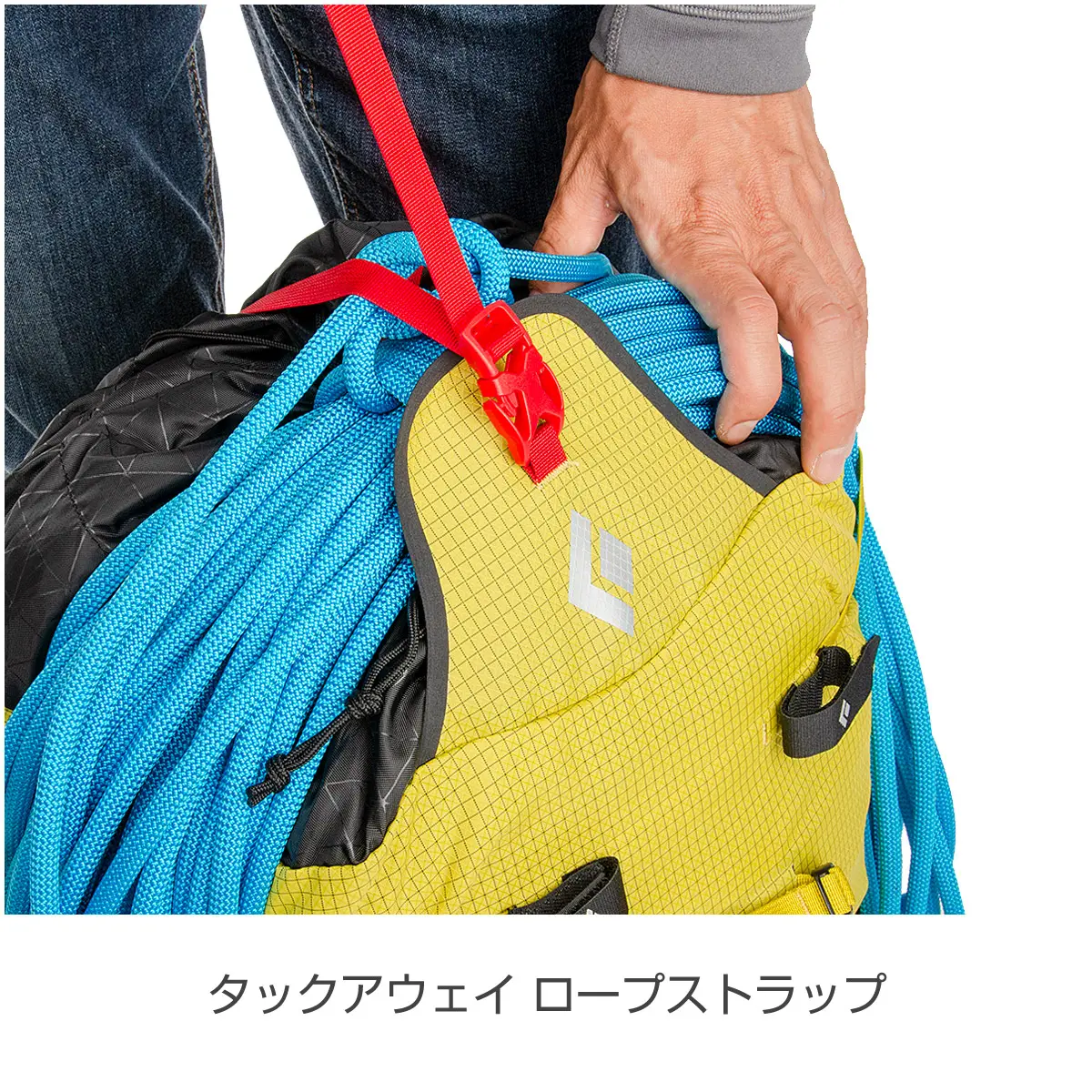 クライミングに不可欠な機能のみに的を絞ったシンプルなアルパインパック。UTS(Ultra Tear Strength)コーティングを施した210d Xリップナイロンを採用。耐摩耗性、引き裂き強度、撥水性に優れます。メインストラップのバックルは雨蓋に直付けされ、グローブを付けた手でもスムーズに操作できます。ヒップベルトやフレームシートを外せば、さらなる軽量化を図れます。