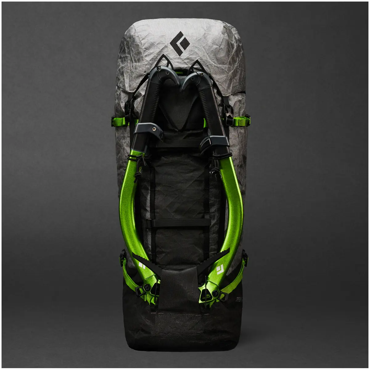 • パック前面の二重デイジーチェーン構造によりクランポン、アイスツール、コンプレッションの取り付け位置を細かく調整可能