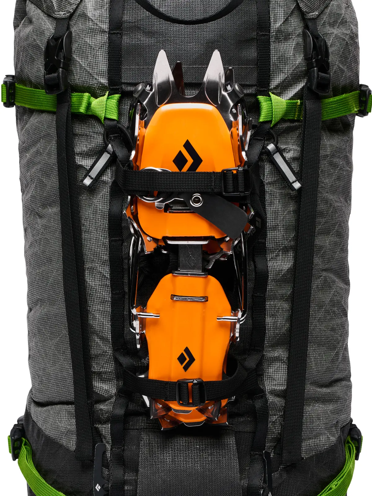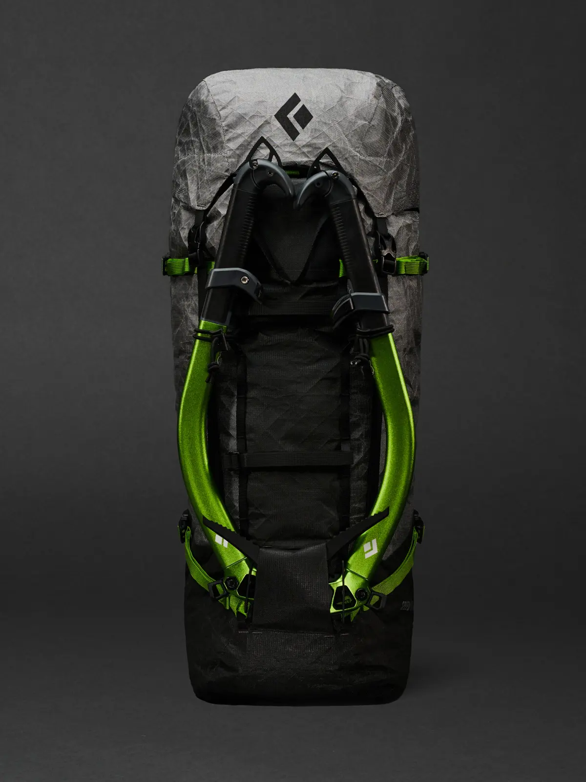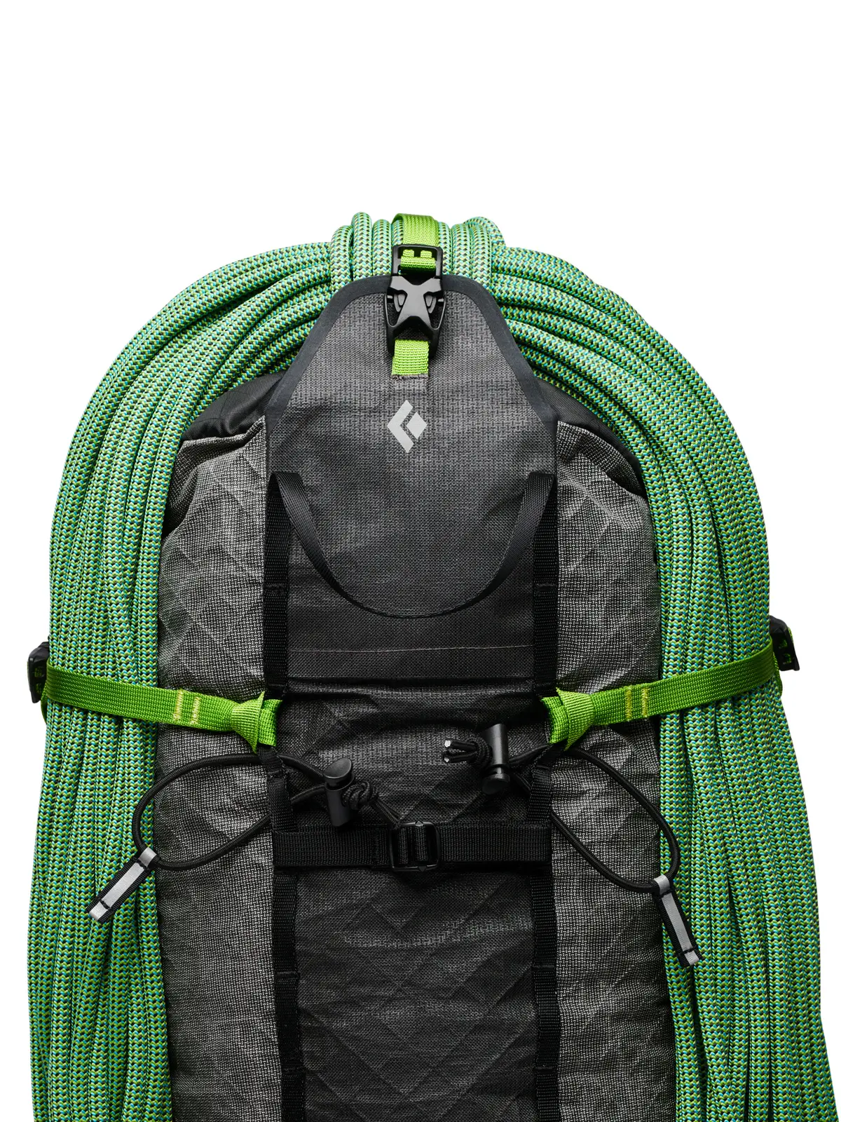 超軽量かつ耐久性に優れたBDで最もテクニカルなクライミングパック。Challenge Sailcloth社のUltraWeave200xメイン生地とUltraTNTPSAシームテープのコンビネーションが抜群の軽さと強度のバランスを実現。ボトム部分には耐摩耗性に優れたUltraWeave400x生地を採用し、耐久性を強化。ウエストベルト、雨ぶた、フレームシートを取り外して軽量化が可能です。クライミングハーネスのソリューションで培った技術に着想を得た薄型ショルダーベルトシステムは、快適でありつつスリムな形状を実現しています。