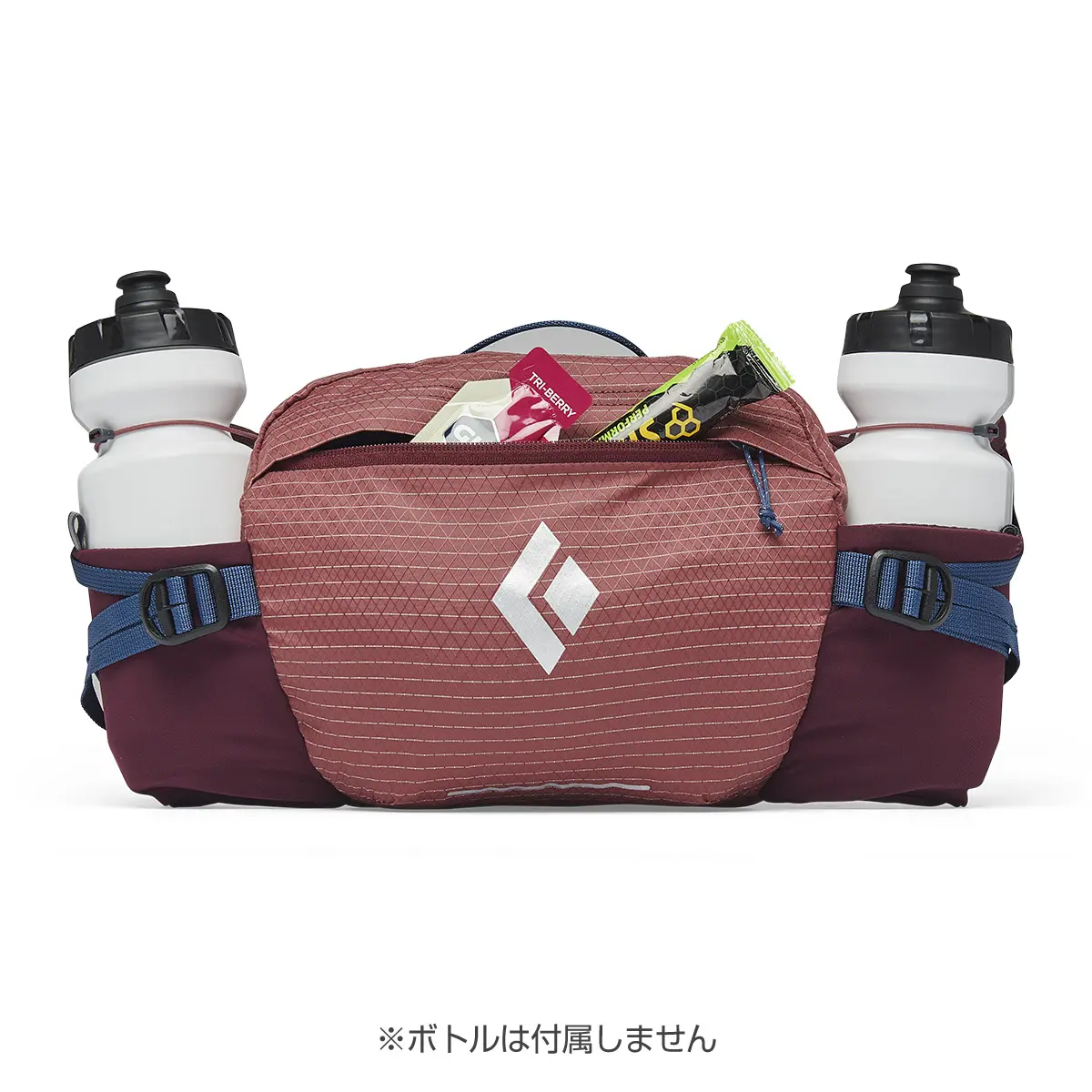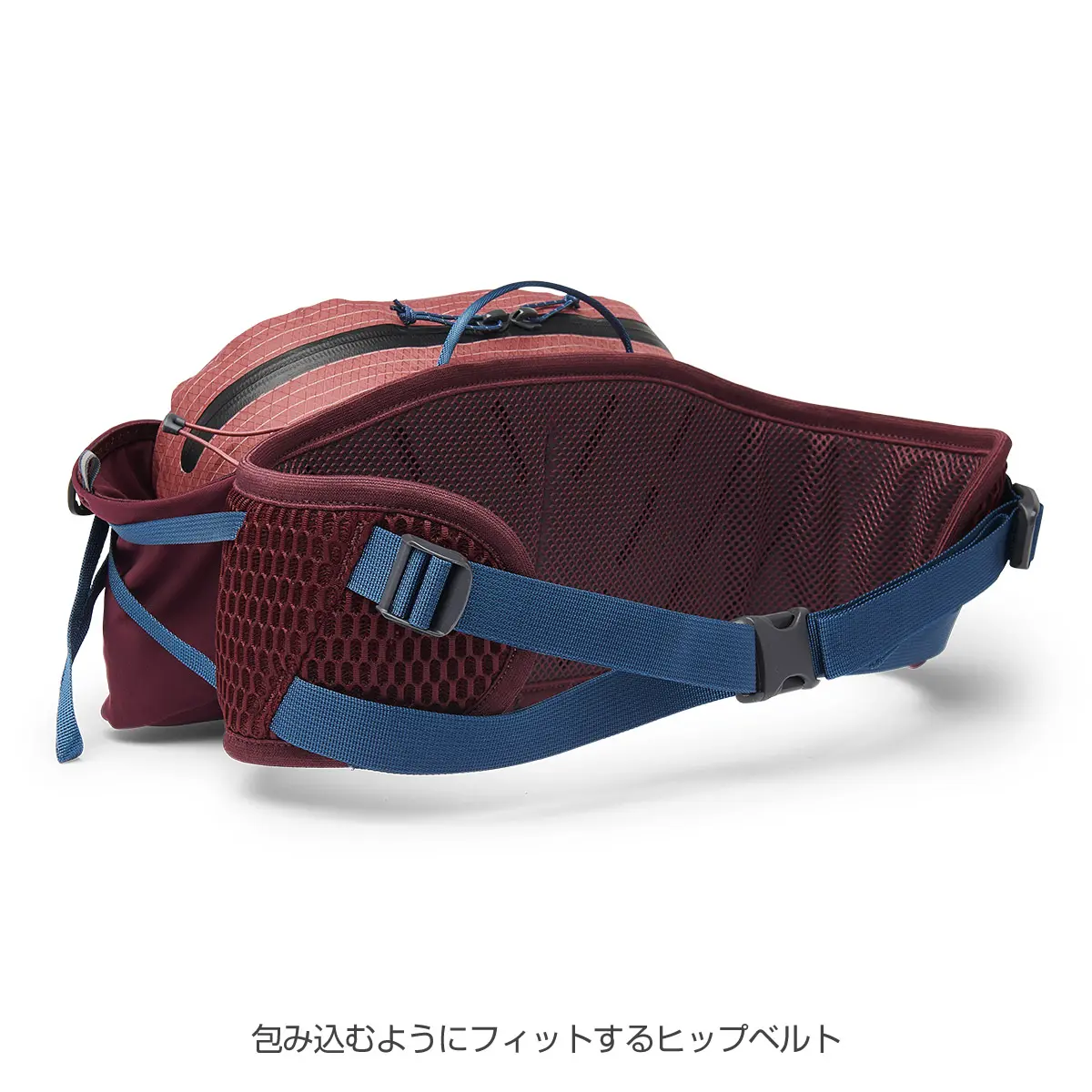 ウォーターボトルやエナジーバーなど、最小限のアイテムを収納できるウエストパック。パック本体から独立した「コンティニュアスフィット 」ヒップベルトが腰を包み込むようにフィットします。通気性に優れたバックパネルは100%リサイクルファブリック製。外部2箇所のジッパーポケット、サイドウォーターボトルポケット、内部ジッパーポケットなど豊富な収納スペースを備えています。環境に配慮したDWR(耐久撥水)加工(製造工程でのPFAS不添加)を採用。