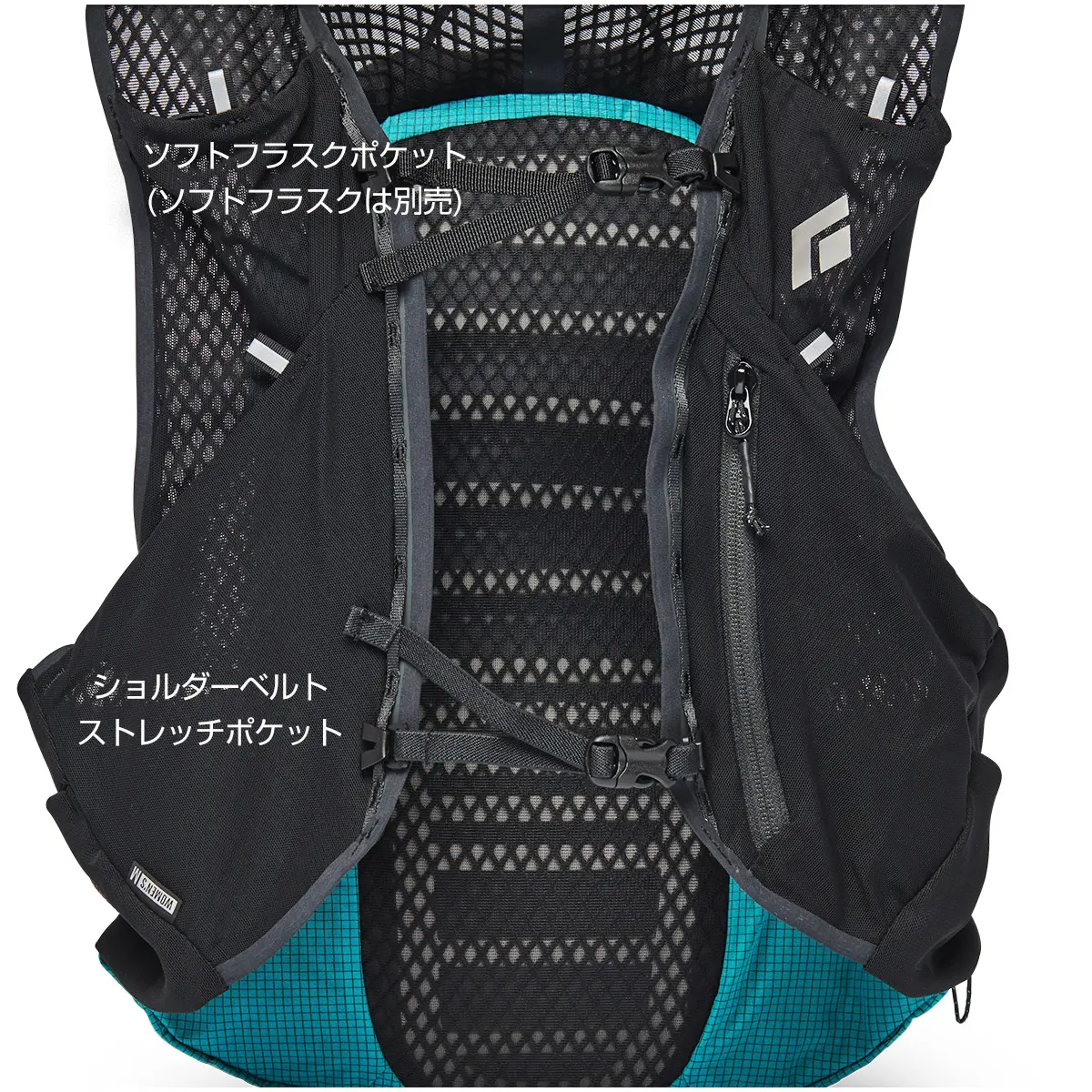 ランニングパックのフォーマットを取り込みつつ、スクランブリングやクライミング、登山での使いやすさを随所に盛り込んだディスタンスパックシリーズ。ディスタンス8はトレイルランニングやスクランブリングに適したコンパクトモデル。背面から側面に掛けてフィット感の高い一体構造。ソフトフラスクポケットは高い位置にあり、走行中にショルダーベルトが跳ね上がるのを軽減。環境に配慮したDWR(耐久撥水)加工(製造工程でのPFAS不添加)を採用。