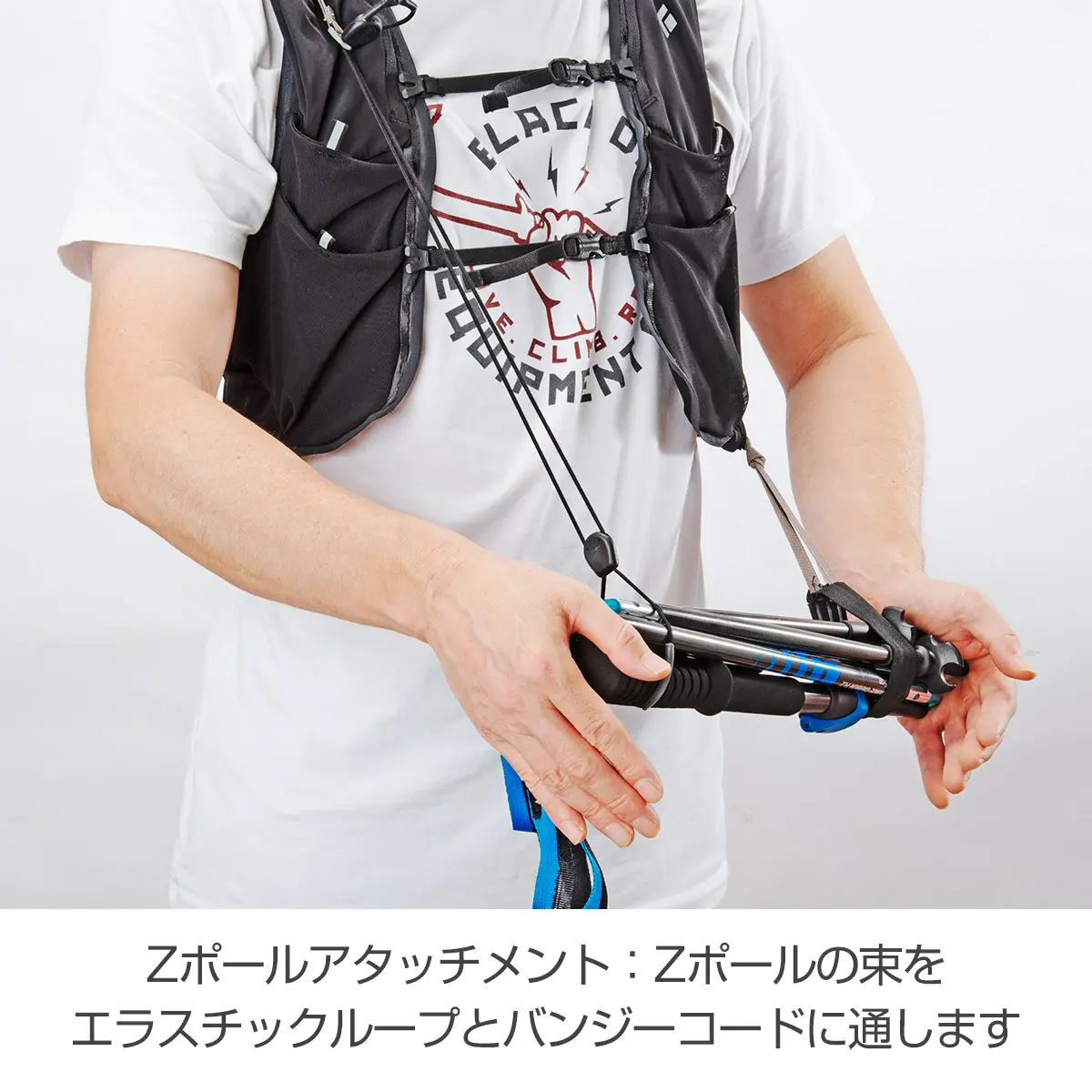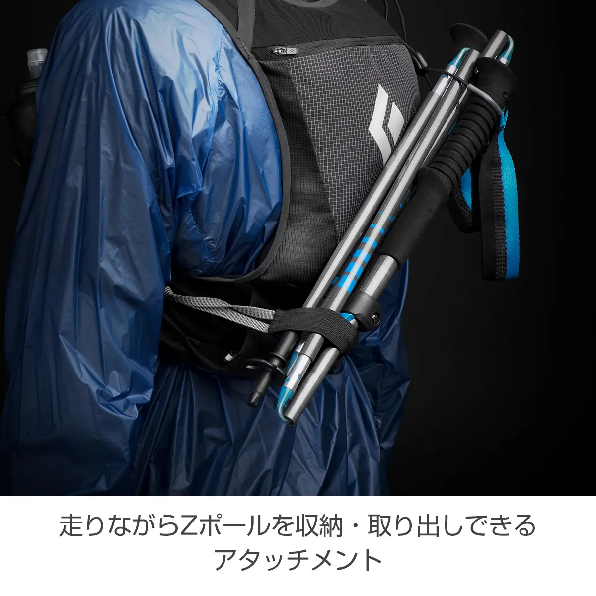 トレイルランナー、ジョー・グラントとのコラボレーションによって誕生したミニマムなランニングベスト。ウルトラマラソンなどをターゲットにしています。行動中のZポールへのアクセスが容易なキャリーシステムを搭載、ペースを落とさずにZポールを使用/収納することができます。