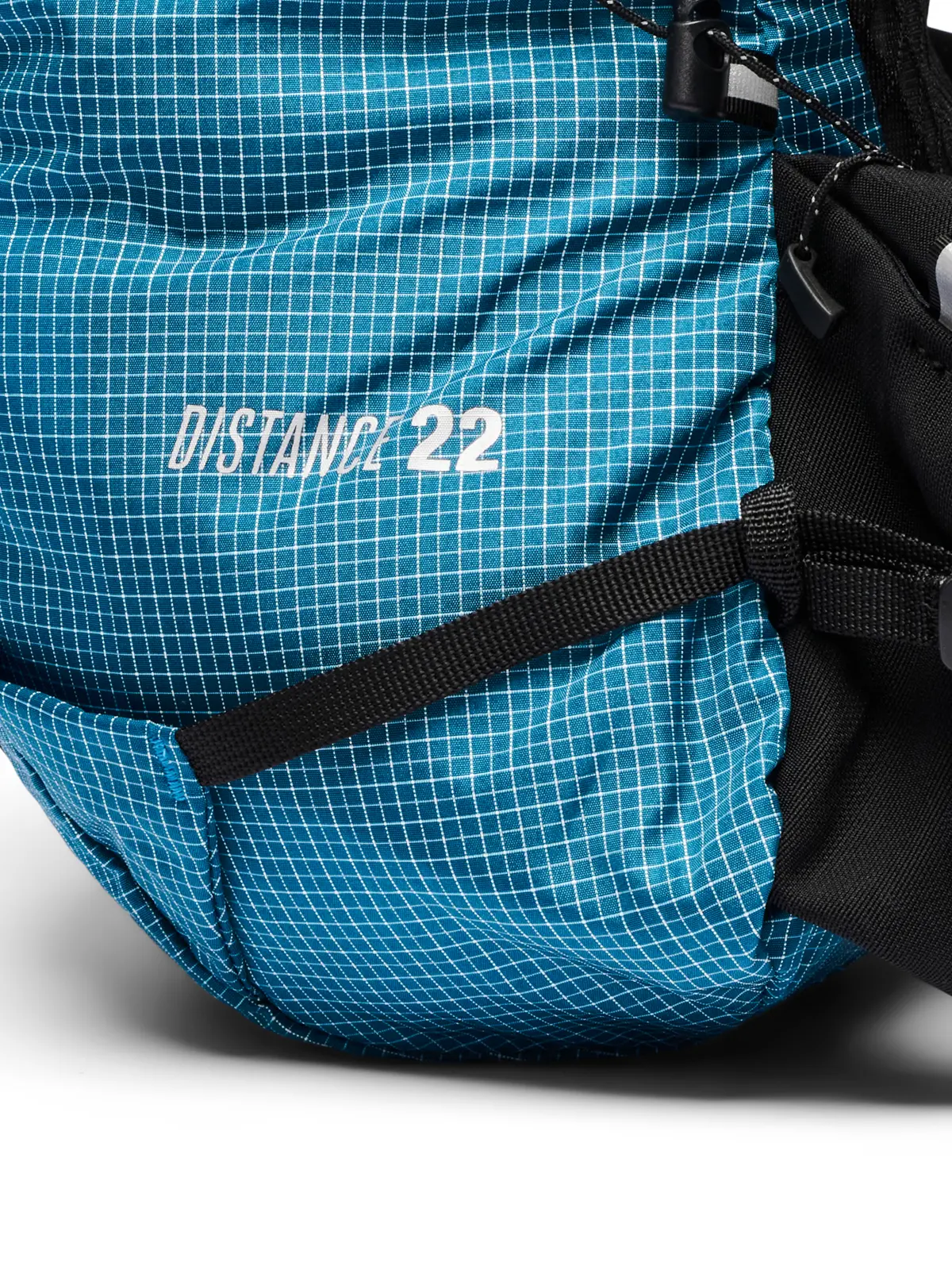 長時間のアルパインアクティビティやファスト&ライトなオーバーナイトに最適なディスタンス22は、ランニングベストのテクノロジーとアルパインパックの機能性を融合したパック。ベスト風サスペンション設計で走行時の揺れ・跳ねを軽減し、動きやすく快適な背負い心地を実現。またBD SETT(ステッチレス・エッジ・テーピング・テクノロジー)により、着用感・耐久性・フィット感がさらに向上。Zポール収納やデュアルピオレキャリーといったアルパイン対応装備も完備しています。