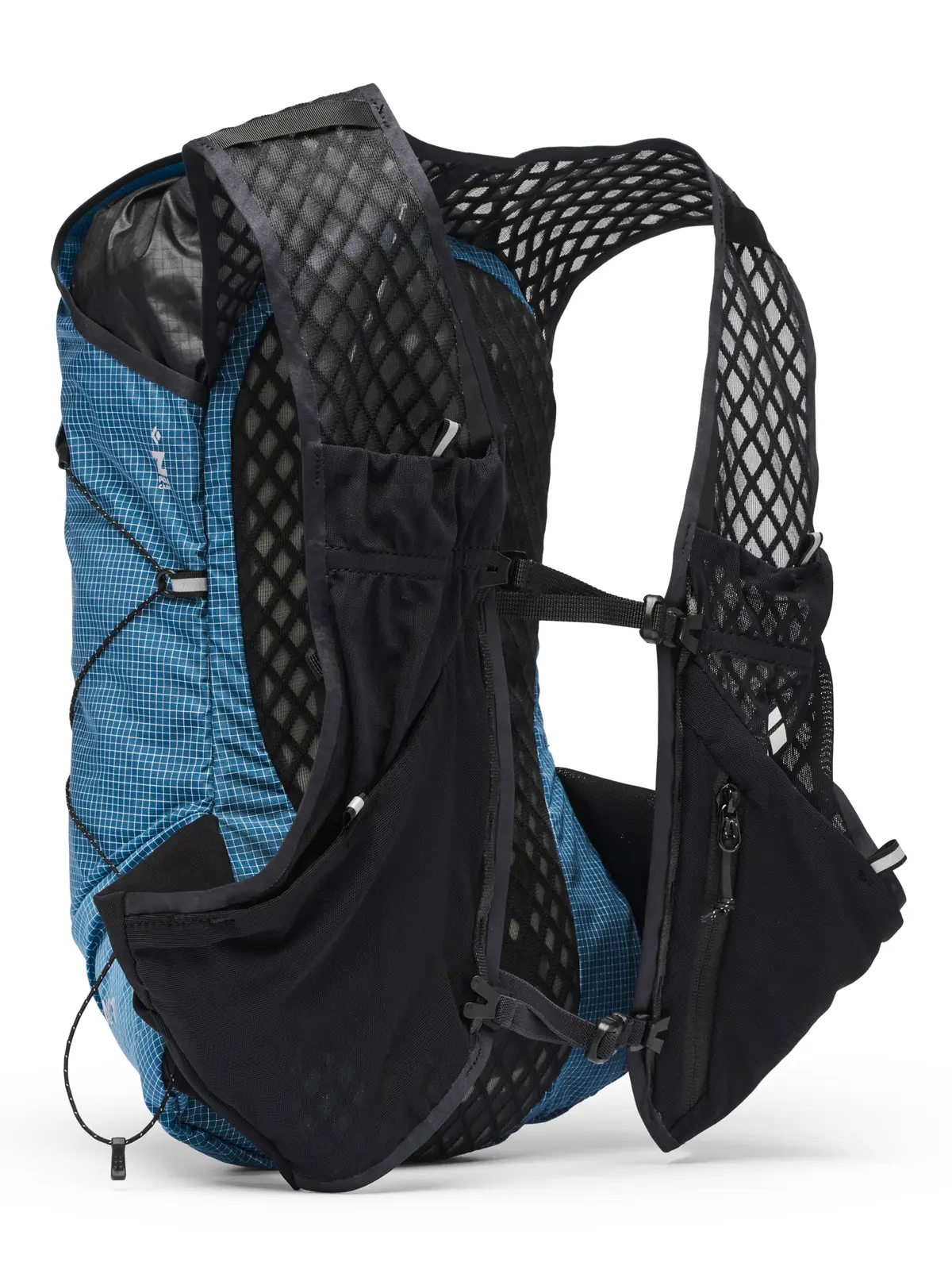 ディスタンスシリーズの8リットルパック。独自のハーネスシステムは、背面パネルからサイドにかけて伸びるストレッチメッシュウィング構造により、動きに合わせてフィットし、擦れのない快適な装着感を実現。滑らかなエッジバインディングと、通気性としなやかさに優れた独自のダイヤモンドメッシュにより、抜群の快適性・肌触りを誇ります。トレッキングポールは行動中でも簡単に出し入れが可能。各種ポケットも充実し、効率的な収納機能を備えています。