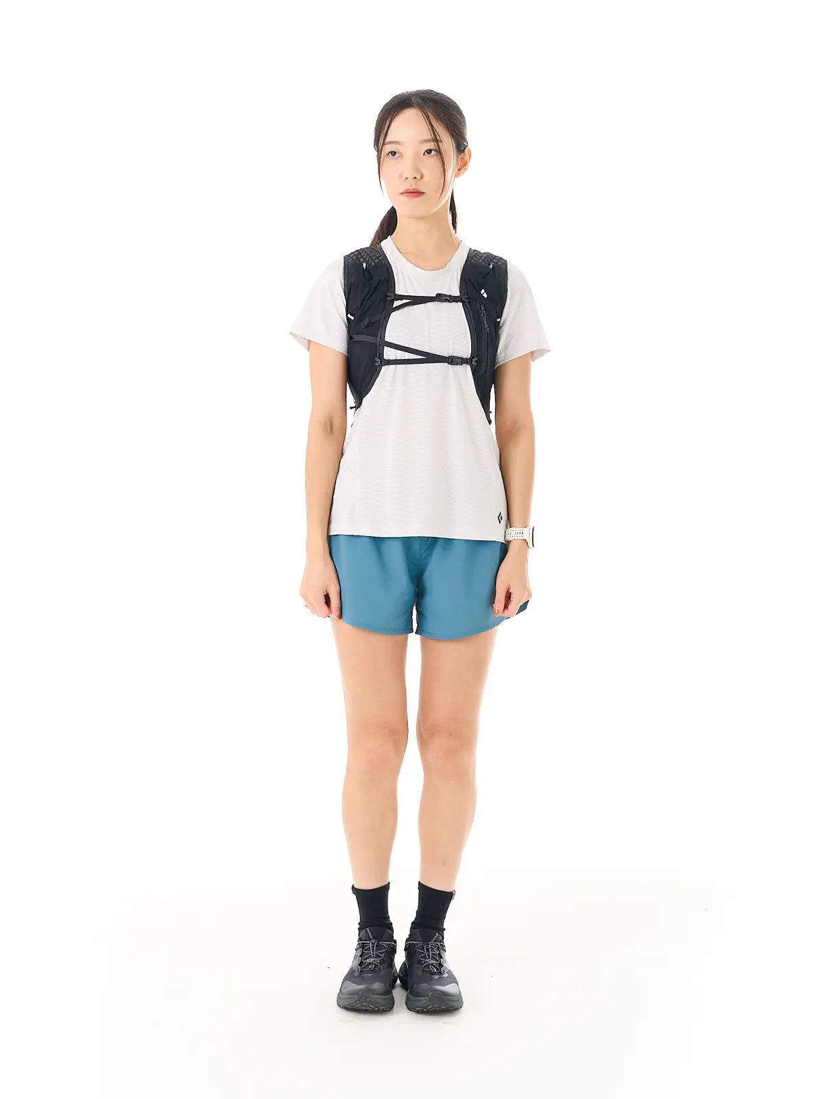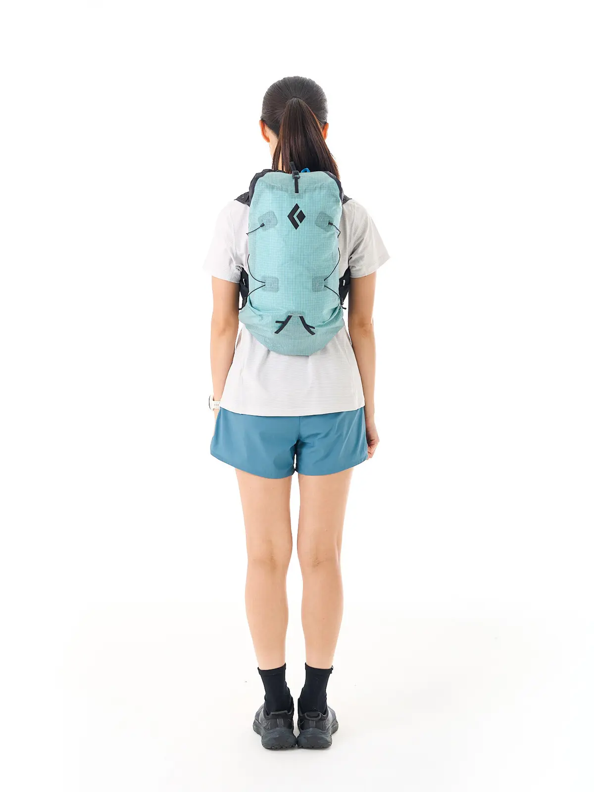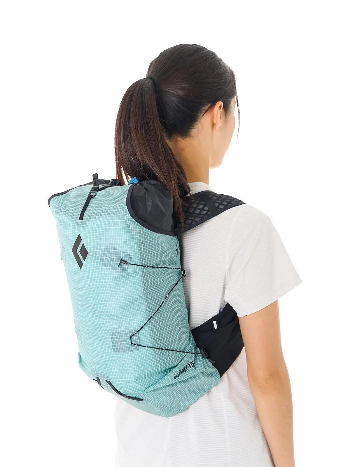 ディスタンス15のウィメンズモデル。女性向けフィッティングで、短めの胴体長や肩の丸みに合わせたショルダーベルト形状が、長時間の着用でも快適な背負い心地を提供します。
