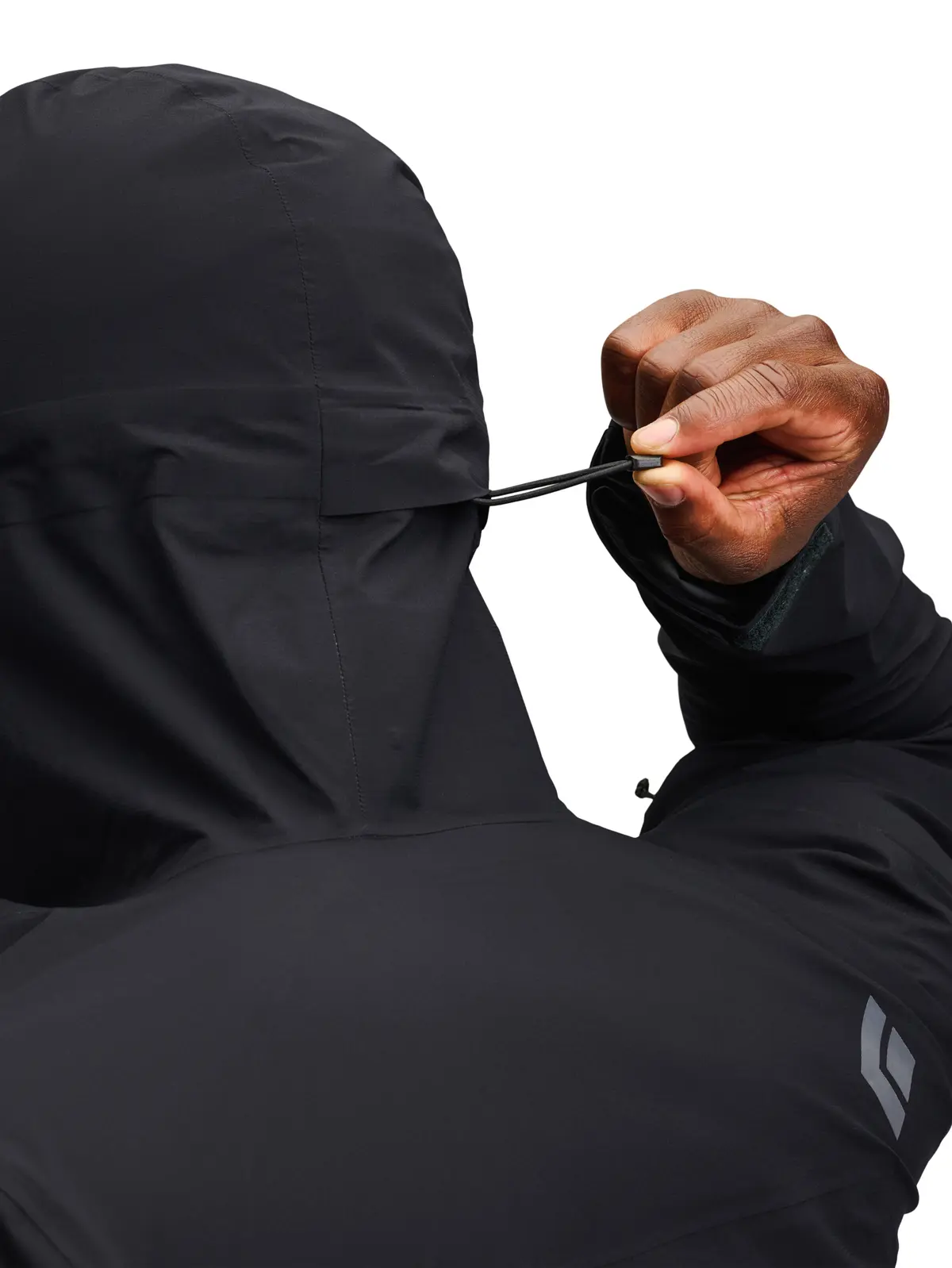 ブラックダイヤモンド随一の防水透湿性とコンパクトな収納性を兼ね備えたレインシェルジャケット。BD.dry3レイヤーに「GTT EMPEL」DWR(耐久撥水)加工をコンビネーション。