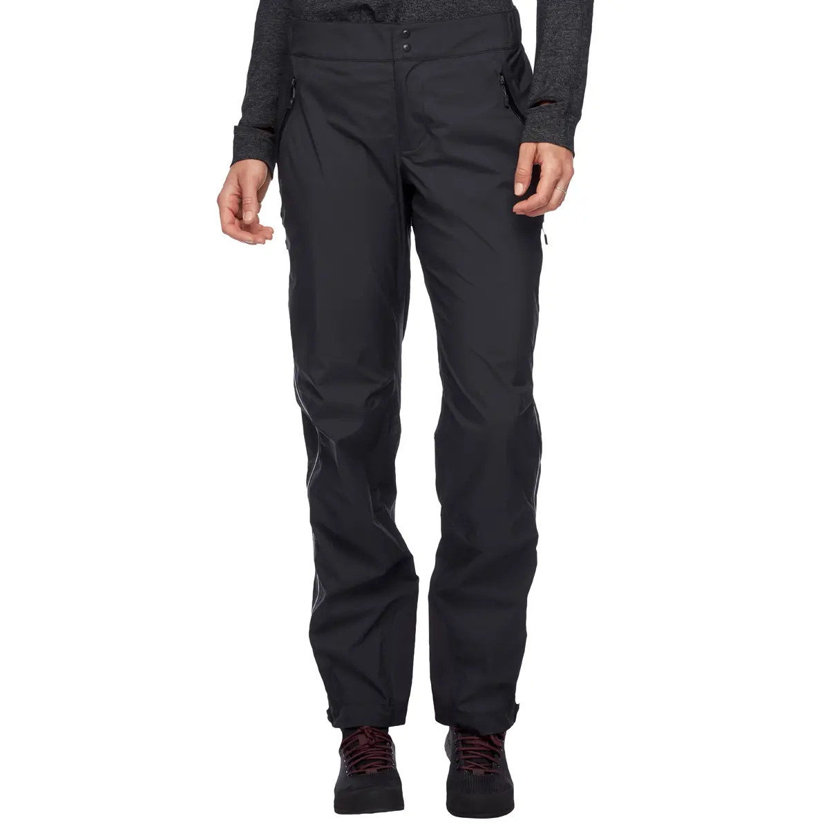 ブラックダイヤモンドのハイエンド3レイヤー・レインパンツ。防水透湿メンブレンBD.dryをラミネートしたストレッチナイロンにGTT社のDWR(耐久撥水)加工(製造工程でのPFAS不添加)を施すことで、従来の撥水加工を大きく上回る撥水耐久性を実現。軽くてパッカブル、ストレッチ性に優れた究極のレインシェルパンツです。