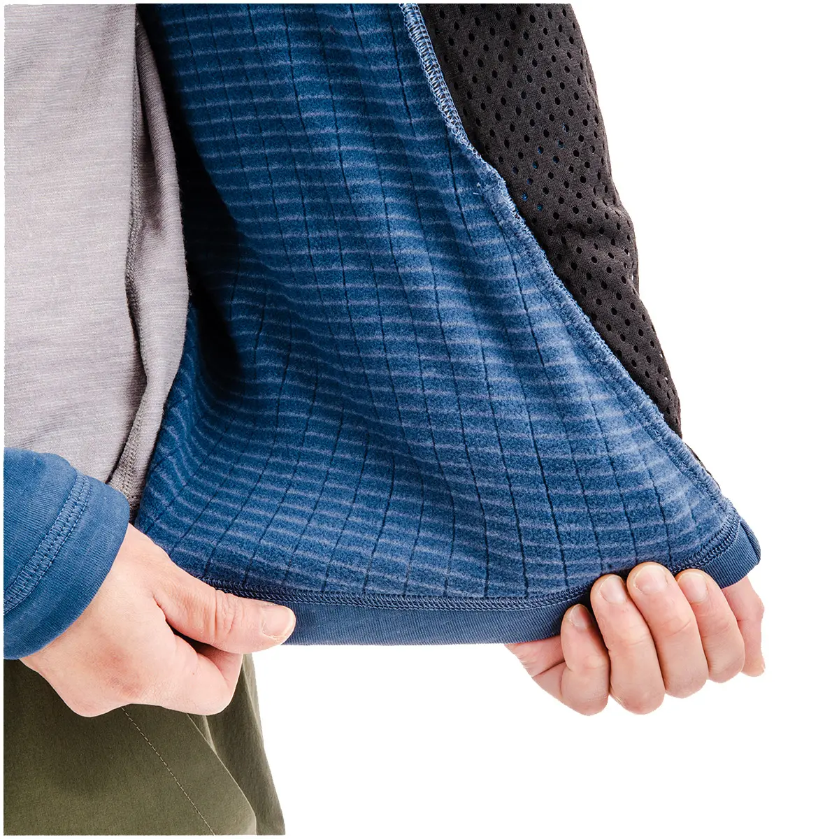 - ストレッチポリエステル/ウールブレンドジャージーフェースフリース(265g/m2、ポリエステル92%、ポリウレタン6%、ウール2%)