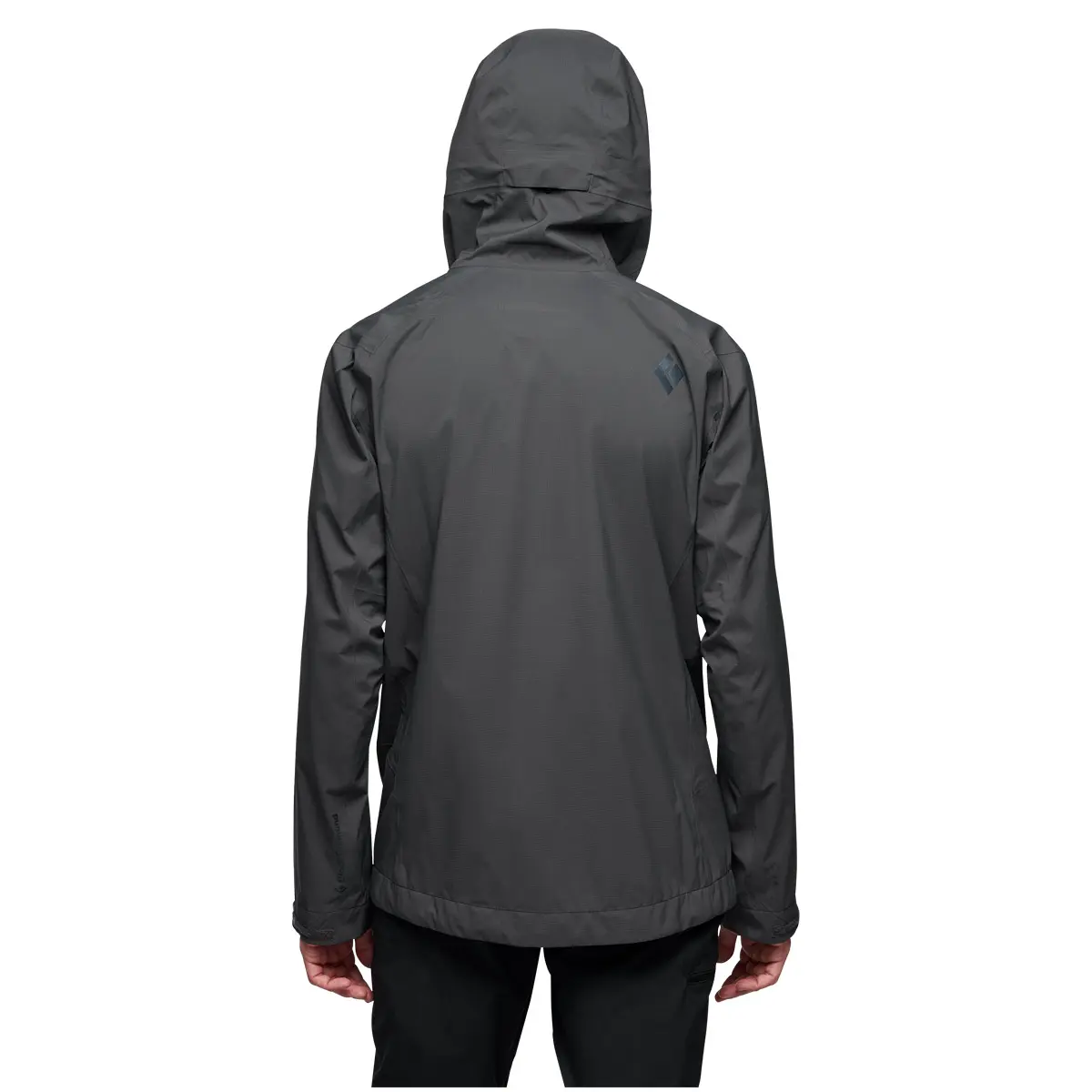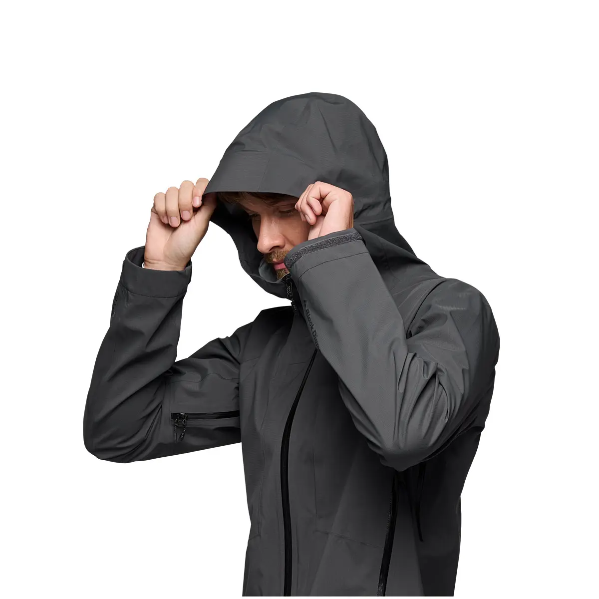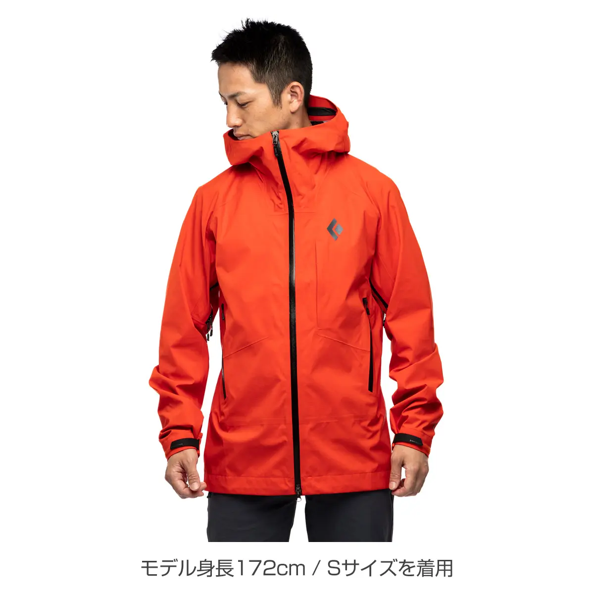 ブラックダイヤモンドで最もテクニカルなシェルジャケット。アルパインジャケットらしい堅牢なシルエットながら動きやすさを考え抜いたデザイン。GTT社のEMPEL DWR(耐久撥水)加工を採用、優れた撥水性が長期間持続します。