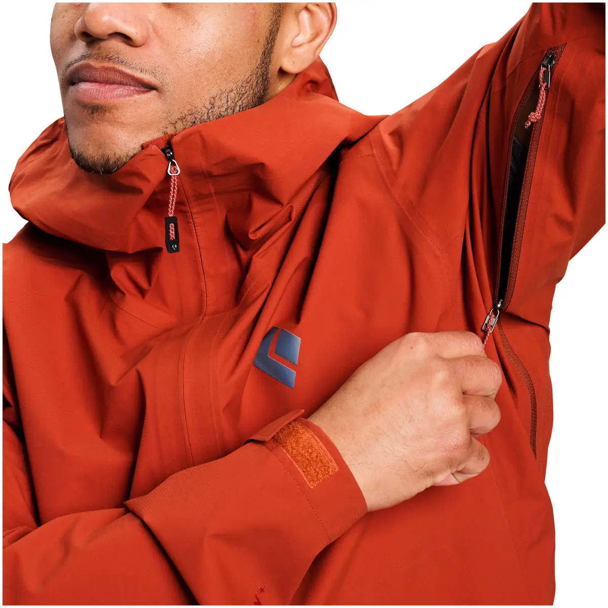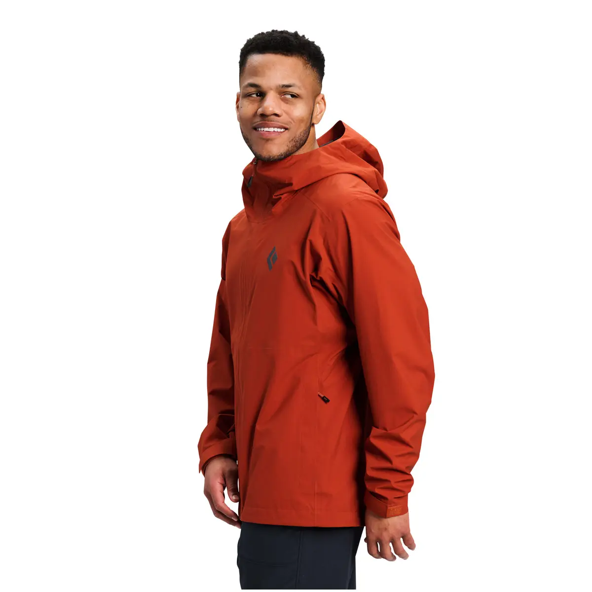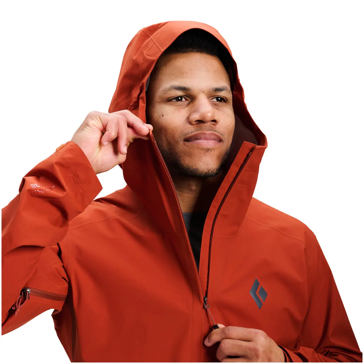 BD.dry3レイヤーに「GTT EMPEL」DWR(耐久撥水)加工を組み合わせ、ブラックダイヤモンド随一の防水透湿性とコンパクトな収納性を兼ね備えたレインシェルジャケット。