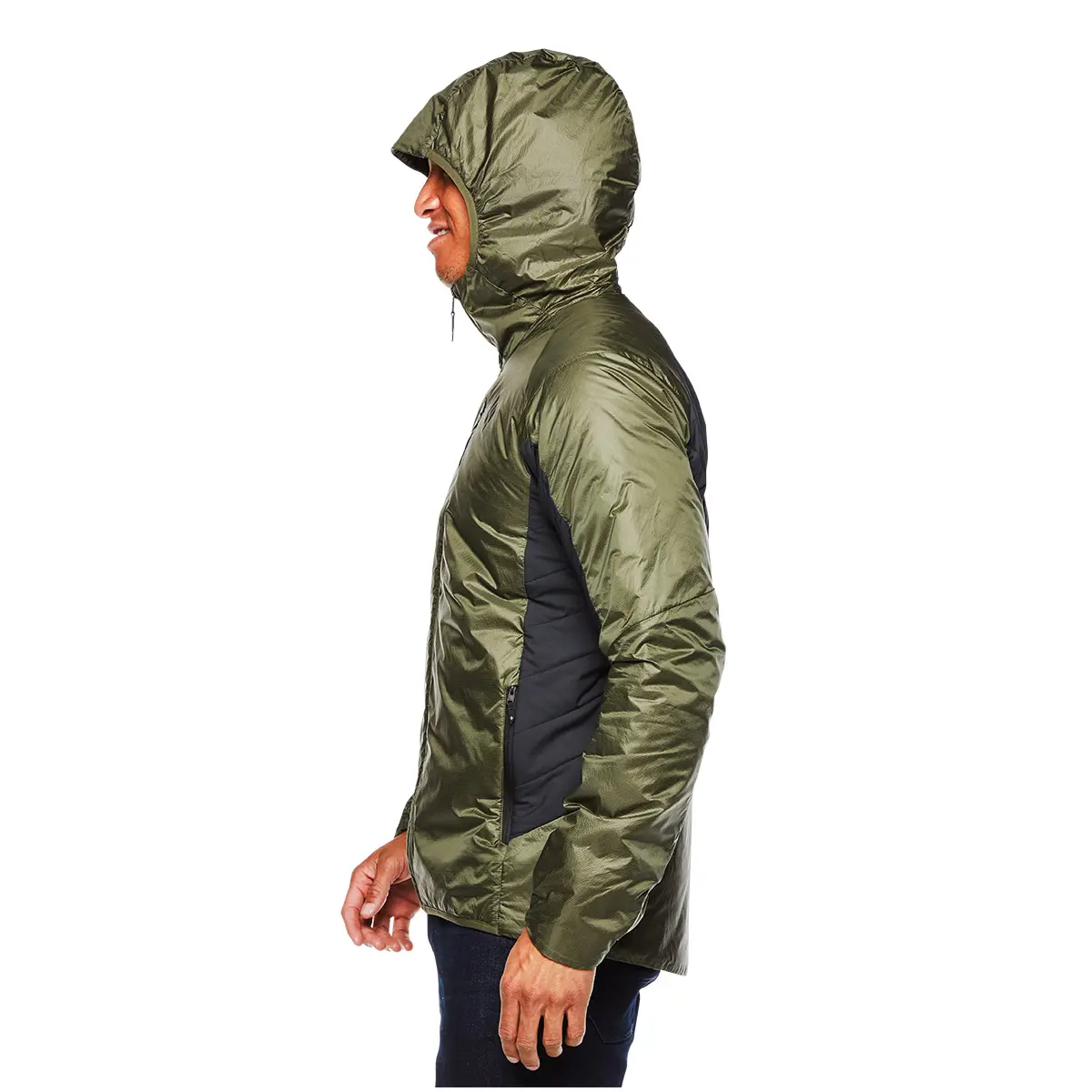 通気性と保温性を兼ね備えたインサレーションフーディー。雪山やバックカントリーなら中間着、マルチピッチならアウターといった使い方ができます。中綿には宇宙服にも使用されているNASAが開発したエアロジェルとプリマロフトをミックス。超軽量ながら断熱性に優れ、従来のプリマロフトより保温性が約20~30%アップしています。シェルの傷みやすい箇所には耐熱性に優れたLCP樹脂を使用。脇や背中には通気性のあるストレッチナイロンを配置し、撥水加工は通常の10倍の耐久性を備えたGTT社のDWR(耐久撥水)加工(製造工程でのPFAS不添加)を採用しました。ハーネスに干渉しないジッパーポケットや、裾からの冷気の流入を防ぐパウダースカート、クライミングヘルメット対応フード、グローブやビーニーを収納できる深い内ポケット、パッカブル仕様など、スキーやクライミングに便利な機能が満載です。