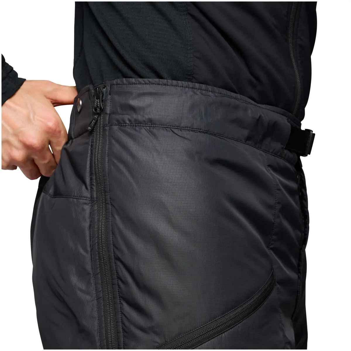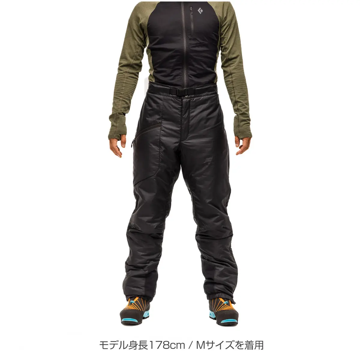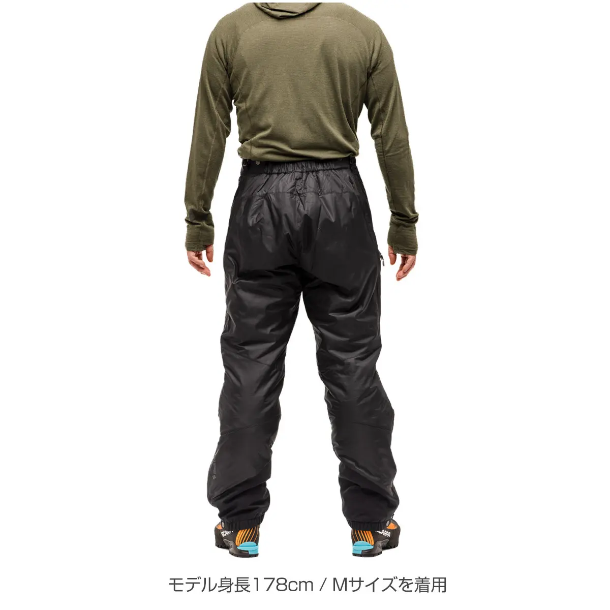 ビレイパーカーと対になるインサレーションパンツ。中綿はPrimaloft®ゴールドクロスコアをメインに、撥水性に優れるPrimaloft®ライズを要所にマッピング。リラックスフィットでシェルパンツの上からも着用できます。アジャスタブルベルトでレイヤーに応じてフィット感を調整でき、側面のフルレングスジッパーで、クランポンを履いたままで脱ぎ履きできます。