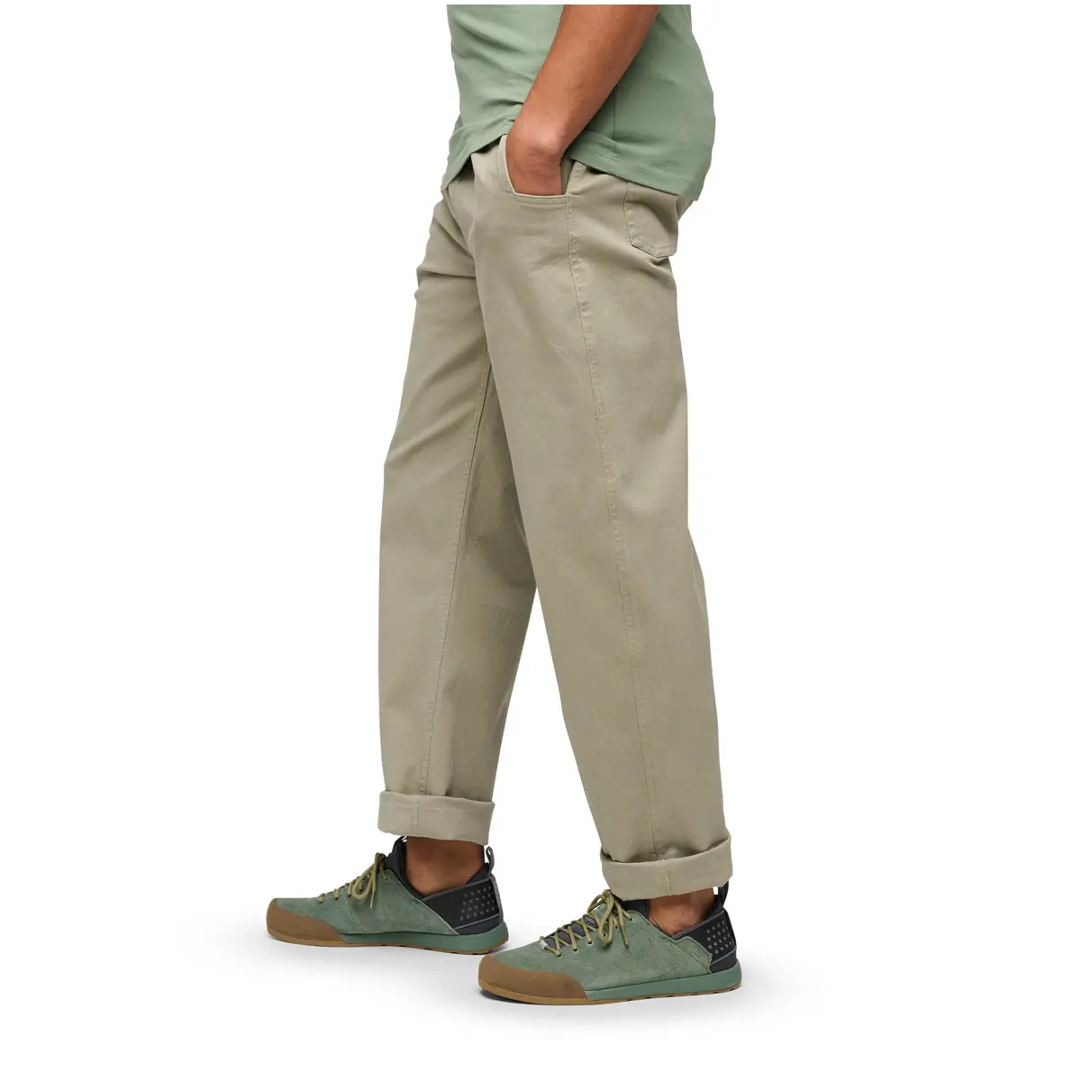 厚手のストレッチツイルを使ったタフなクライミングパンツ。ウエストはゴム入りで、ドローコードで締めてざっくりと履けます。また、ハーネスをすっきりと着用できます。
