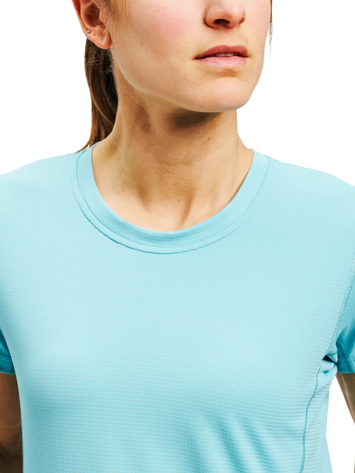 通気性の良い軽量ポリエステルニット製のシャツ。発汗量の多いアクティビティに最適です。