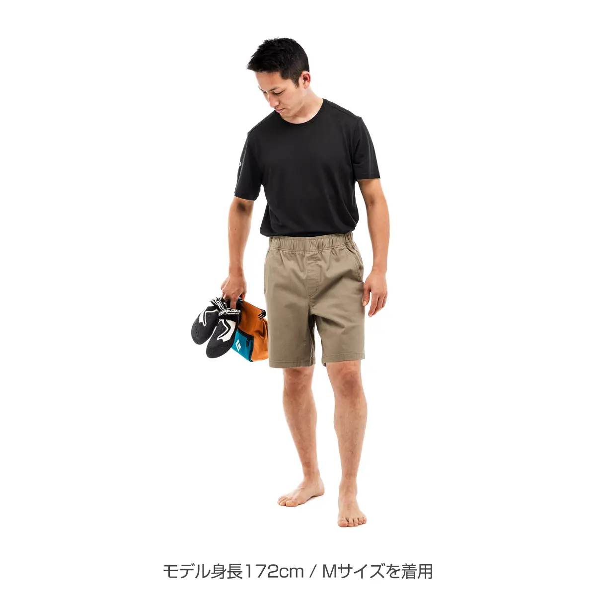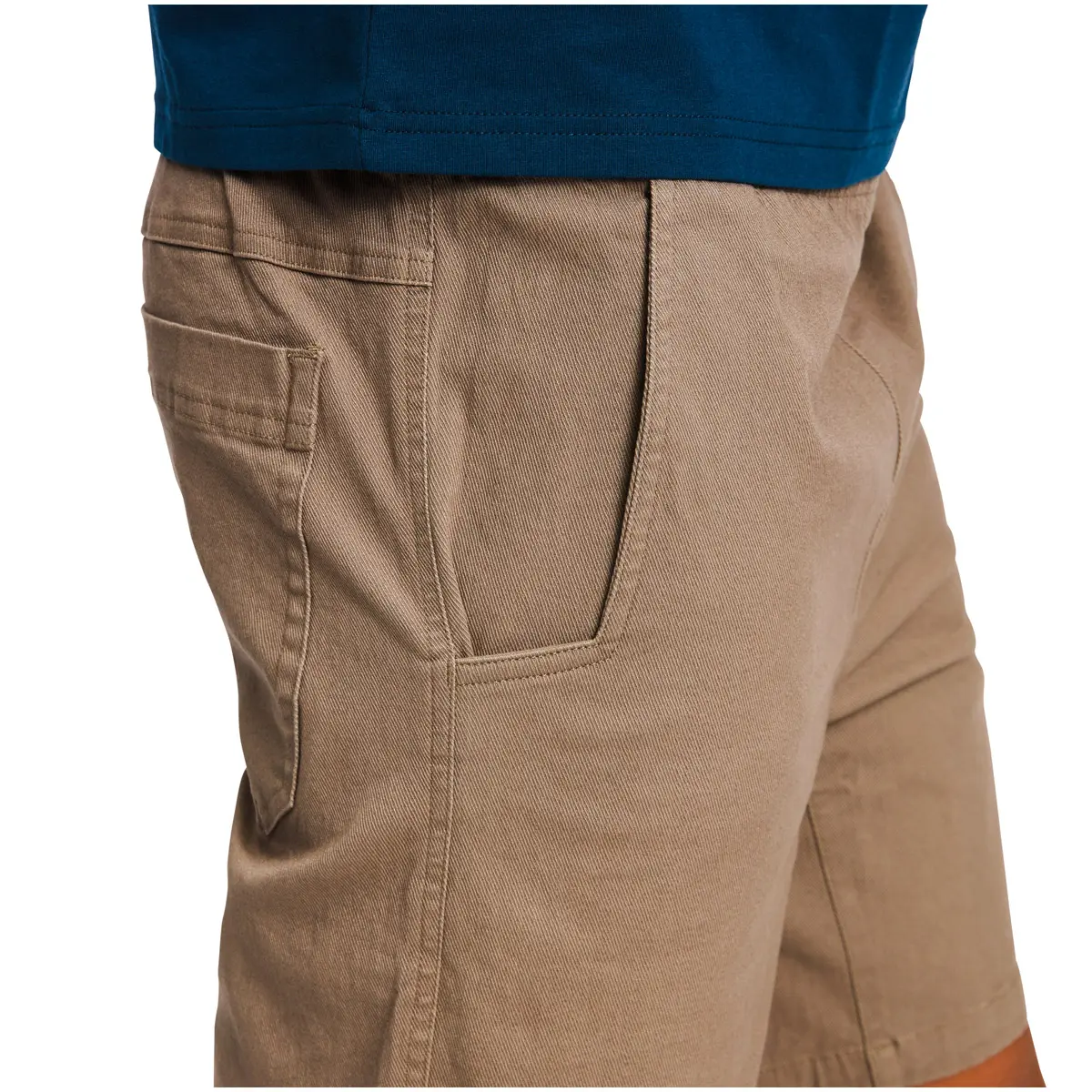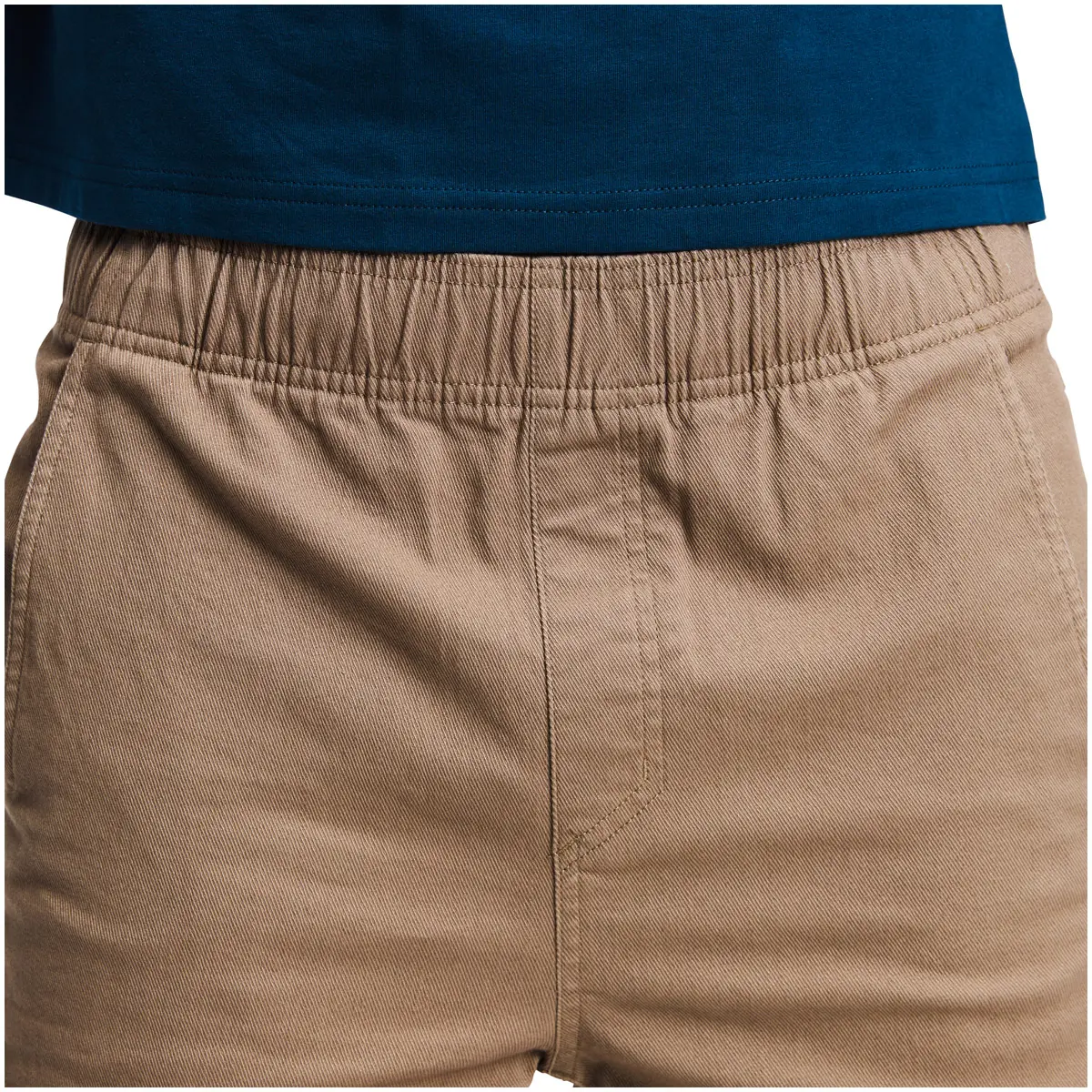 タフなストレッチコットンツイル製のショーツ。しっかりした履き心地ながら伸縮性があり、クライミングの大胆なムーブを妨げません。前後にハンドポケットを備えたクラシックなシルエット。ウエストはゴム入りで、ドローコードを締めてざっくりと履けます。