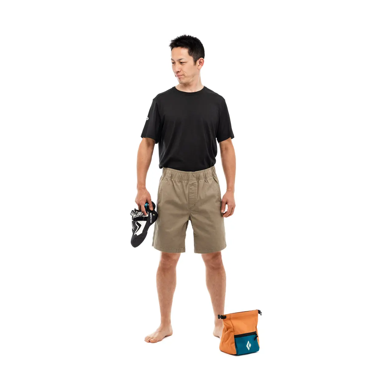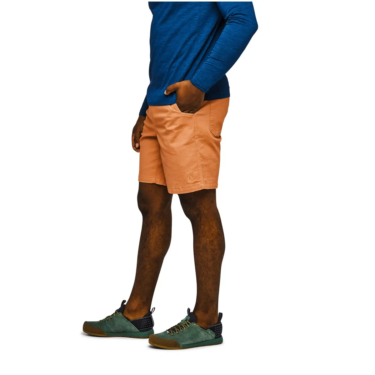タフなストレッチコットンツイル製のショーツ。しっかりした履き心地ながら伸縮性があり、クライミングの大胆なムーブを妨げません。前後にハンドポケットを備えたクラシックなシルエット。ウエストはゴム入りで、ドローコードを締めてざっくりと履けます。