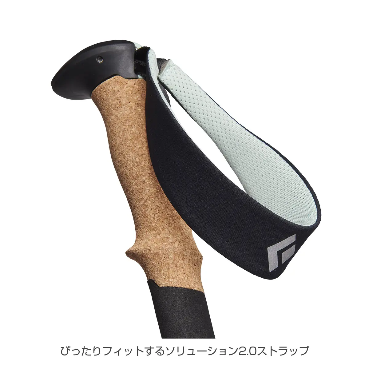 プレミアムなトレッキングポール、パーシュートのグリップにショック機構を内蔵、肘への負担を軽減してくれるモデル。握りやすいエルゴノミックデザインのナチュラルコルクグリップが疲労を軽減。クライミングハーネスからフィードバックされたソリューション2.0ストラップは手にぴったりとフィットします。新開発のフリックロックプラスは指に優しく、軽い操作感で調整できます。