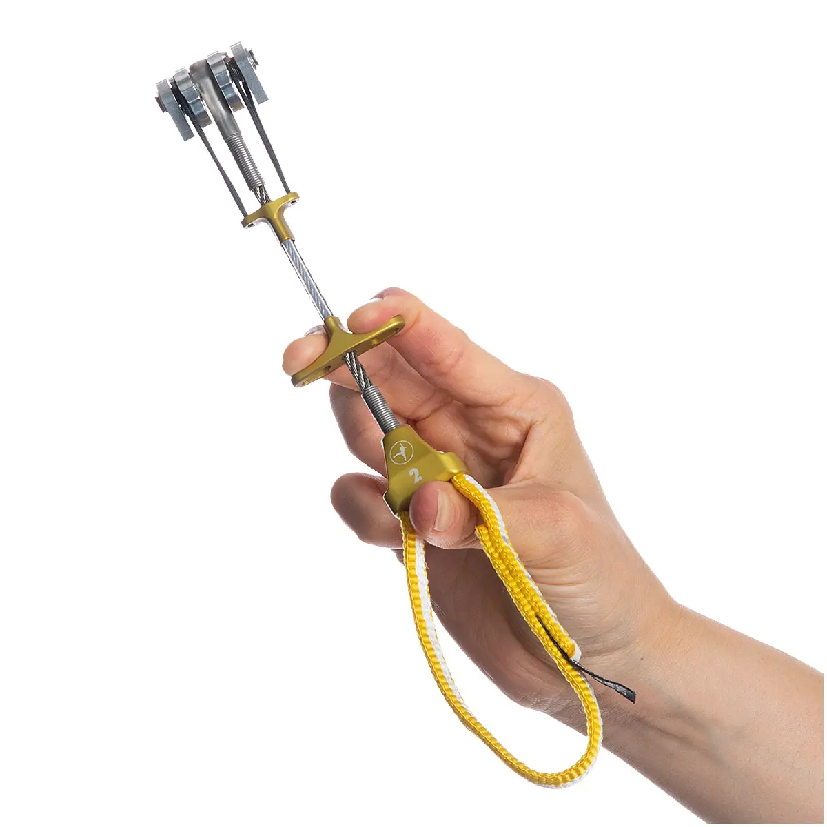 メトリウス・スモールカムの定番モデル。オーソドックスな1軸構造によりセットした時の安定感に優れ、ウォーキングしにくいのが特長です。トリガーの肉抜き、Cループの省略、細いソウンスリングの採用など軽さを徹底追求。軽量化最優先のクライミングに最適です。トリガーとサムピースはサイズ毎にアナダイズド塗装されており、サイズを素早く視認できます。