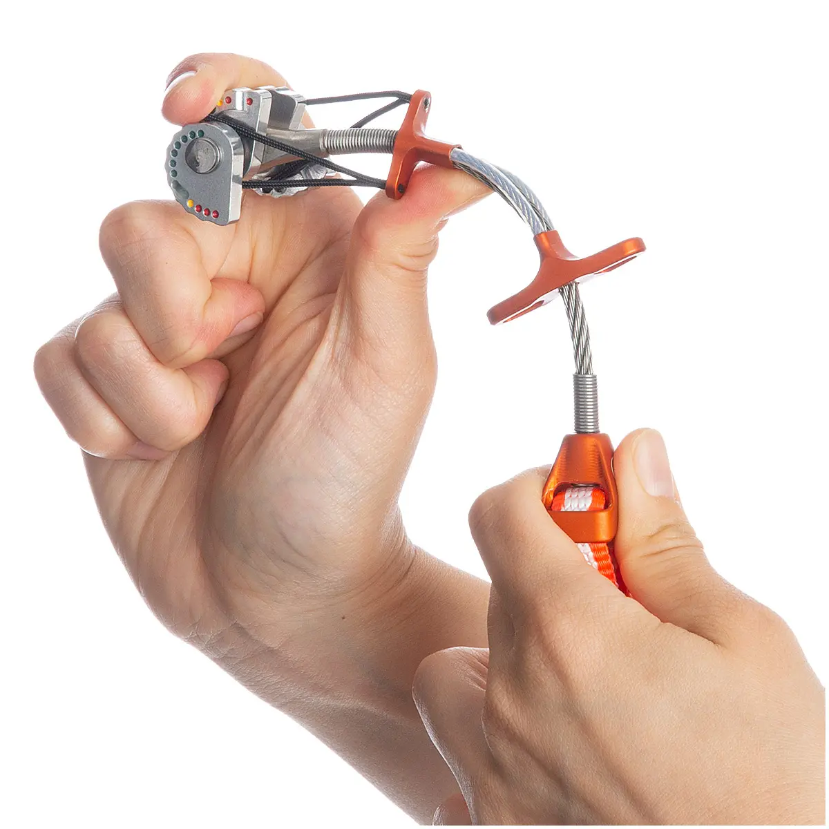メトリウス・スモールカムの定番モデル。オーソドックスな1軸構造によりセットした時の安定感に優れ、ウォーキングしにくいのが特長です。トリガーの肉抜き、Cループの省略、細いソウンスリングの採用など軽さを徹底追求。軽量化最優先のクライミングに最適です。トリガーとサムピースはサイズ毎にアナダイズド塗装されており、サイズを素早く視認できます。