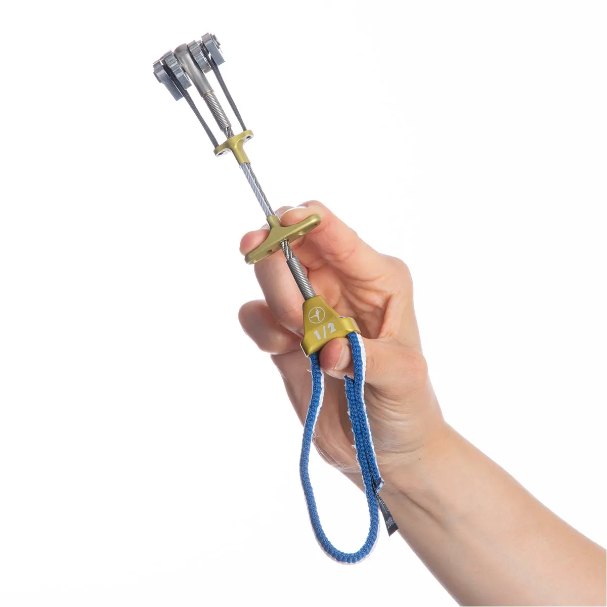 大小大きさの違うカムを組み合わせたオフセットヘッドを採用したマスターカム。セットが難しいピトンスカー、ポケット、変形クラックにも有効です。