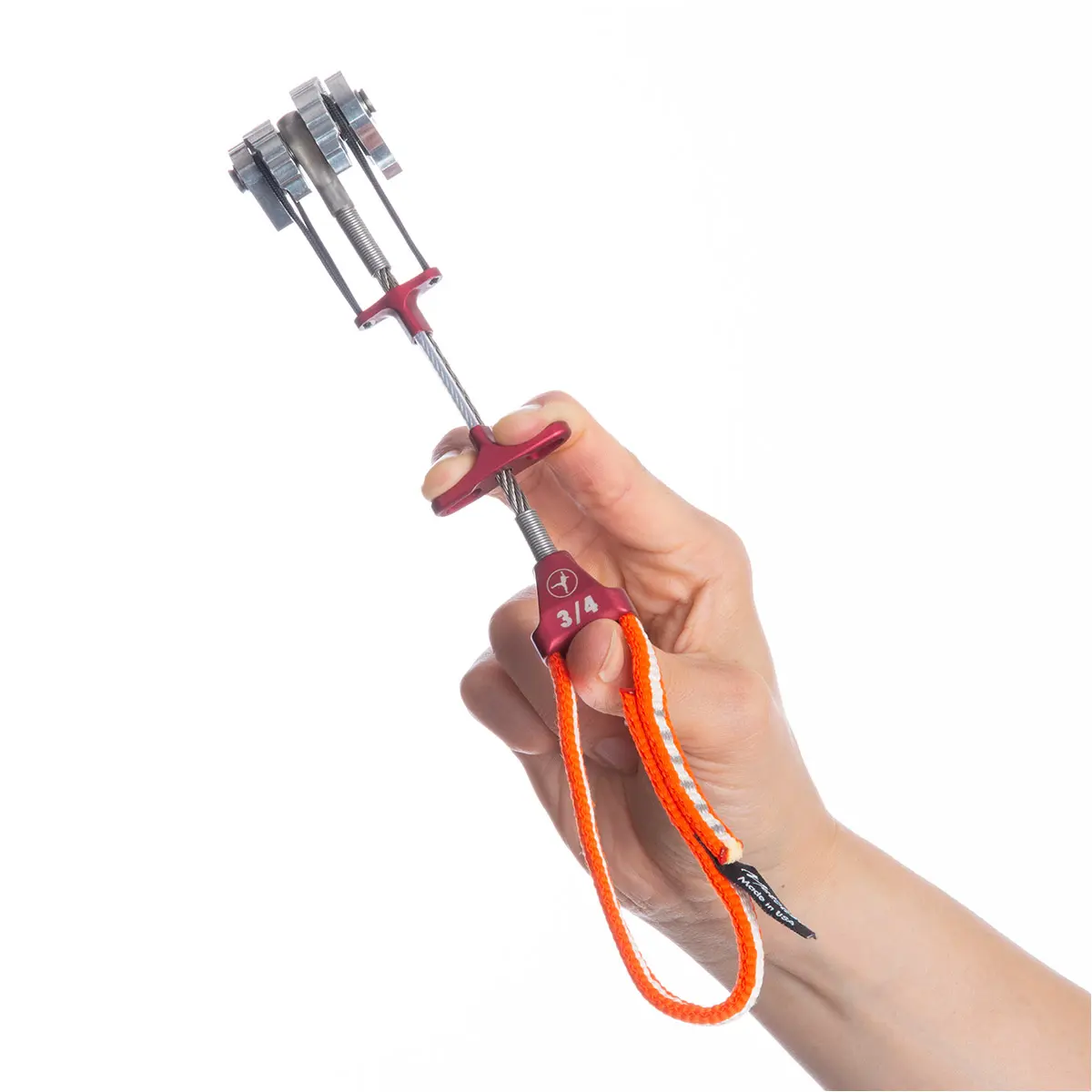 大小大きさの違うカムを組み合わせたオフセットヘッドを採用したマスターカム。セットが難しいピトンスカー、ポケット、変形クラックにも有効です。