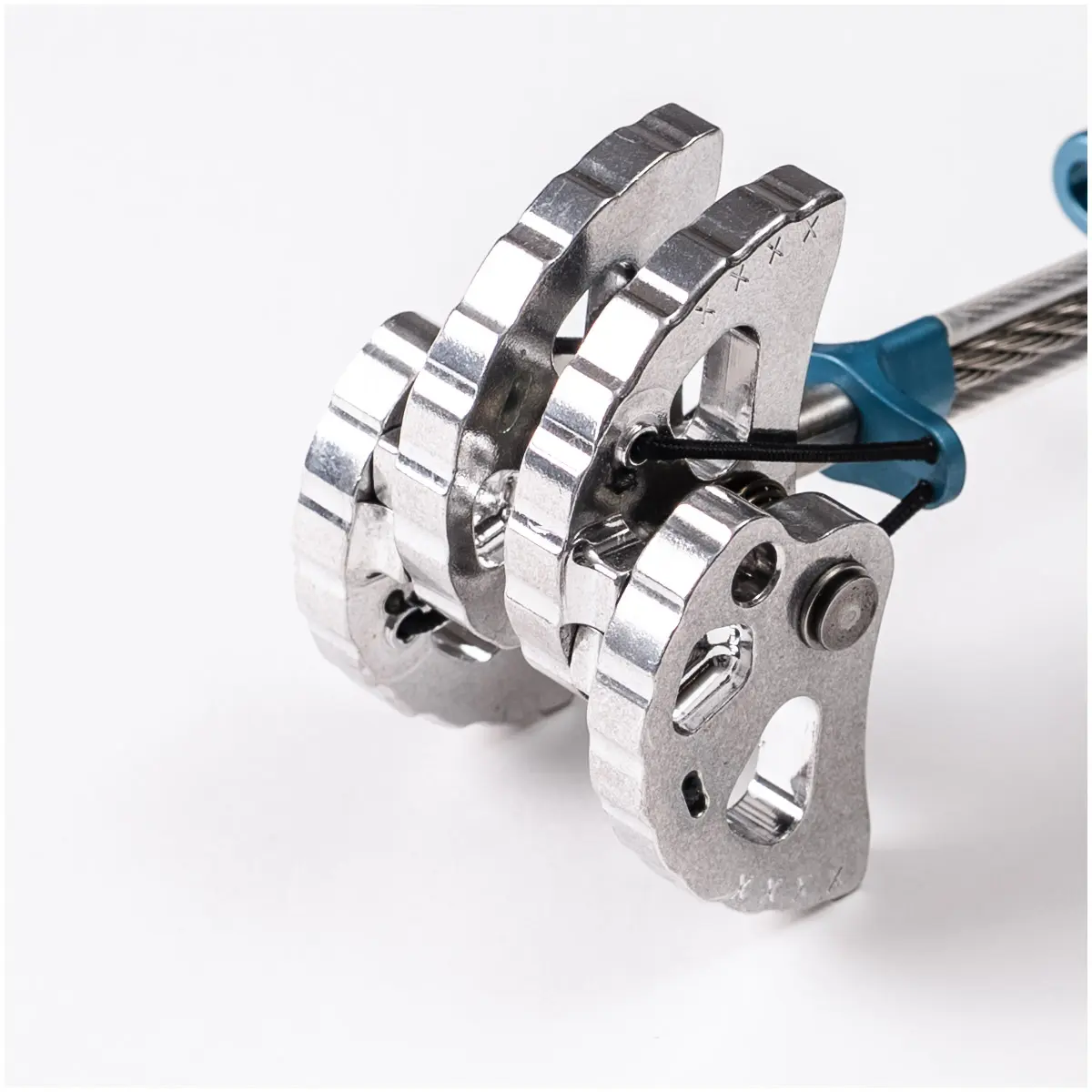 メトリウス・スモールカムの定番モデル。オーソドックスな1軸構造によりセットした時の安定感に優れ、ウォーキングしにくいのが特長です。トリガーの肉抜き、Cループの省略、細いソウンスリングの採用などにより軽さを徹底追求。トリガーとサムピースはサイズ毎にアナダイズド塗装され、サイズを素早く視認できます。2025/2026年モデルはサムピースが親指を添えやすい形状にリファイン。浅い効きを警告するレンジファインダーが分かりやすくなりました。