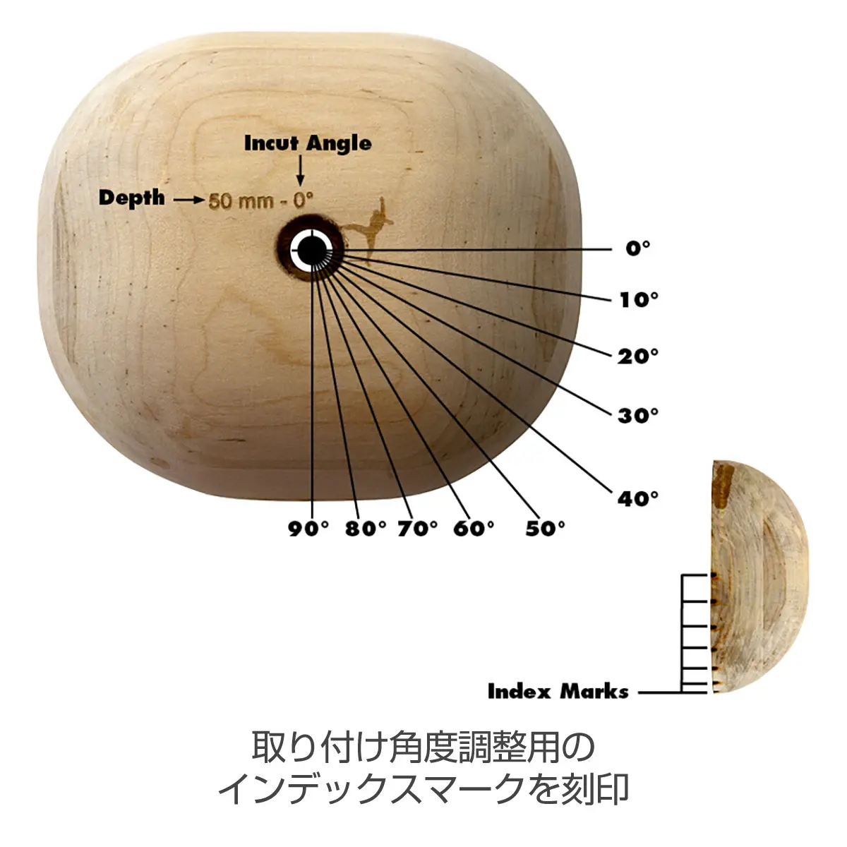 システマチックなトレーニングを行うための木製ホールド。指皮を減らしにくく、グリップに優れます。同一形状のホールドを6個セット。CG設計とCNC加工ににより完璧な均一性と対称性を実現しています。厚みと保持面の角度を選べるので、思いのままのセッティングが可能。スローパーの場合、厚さは50mm、60mm、70mmの3タイプ。保持面の角度は0度、15度、30度の3タイプ。ホールドのフチには10度ごとにマークが刻まれており、左右対称に設置することができます。