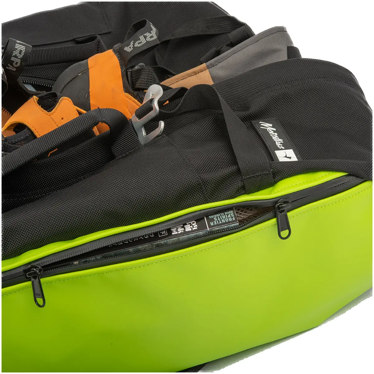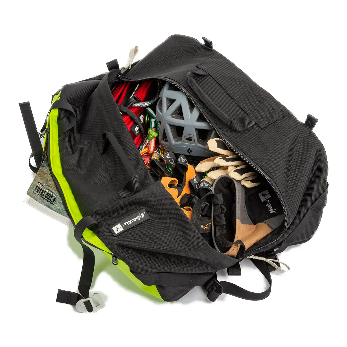 堅牢なデュラセインを側面に使用した定番のクラッグパック、クラッグステーションがカラーチェンジ。正面を大きくジップオープンできるダッフルバッグスタイル。背負う、持ち運ぶの2ウェイ方式で、ショルダー&ヒップベルトは背面に収納できます。