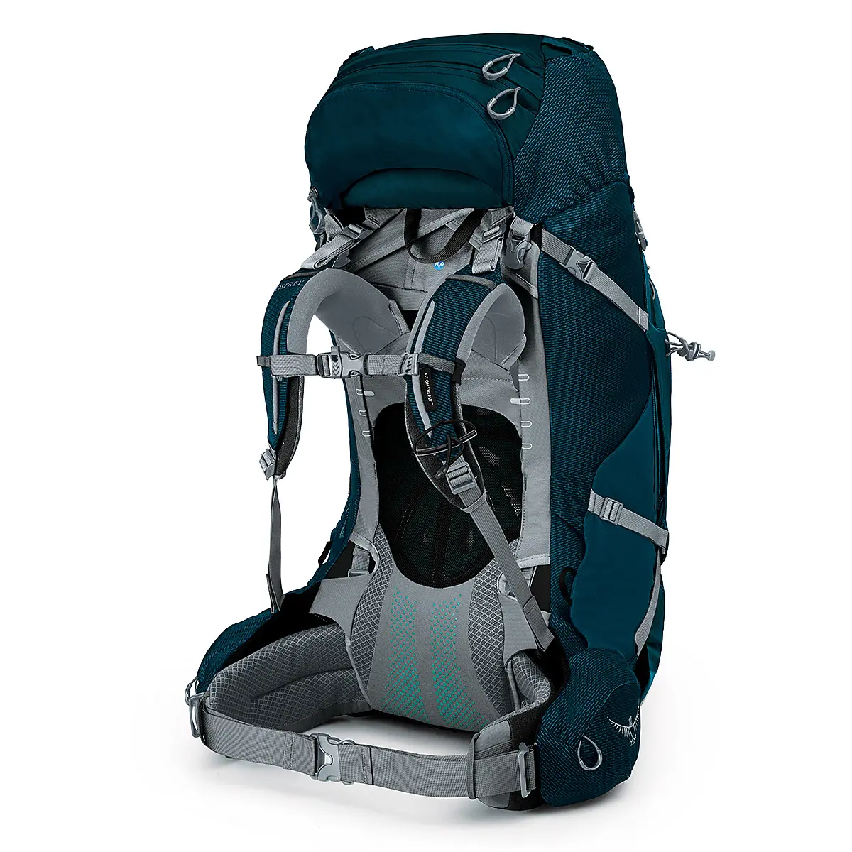エーリエルプラス70は、長期テント山行や冬山装備の重い荷物も安定して背負うことができる、女性用の大容量バックパックです。ヒップベルトに荷重を効率よく伝えるライトワイヤーペリフェラルフレーム、通気孔を備えた射出成形のダイカットフォームフレームシートが快適な背負い心地を約束します。女性の体型にフィットするショルダーハーネスとヒップベルトは長さと角度を細かく調整することが可能で、デイパックになる着脱式のトップリッドとレインカバーを標準装備しています。