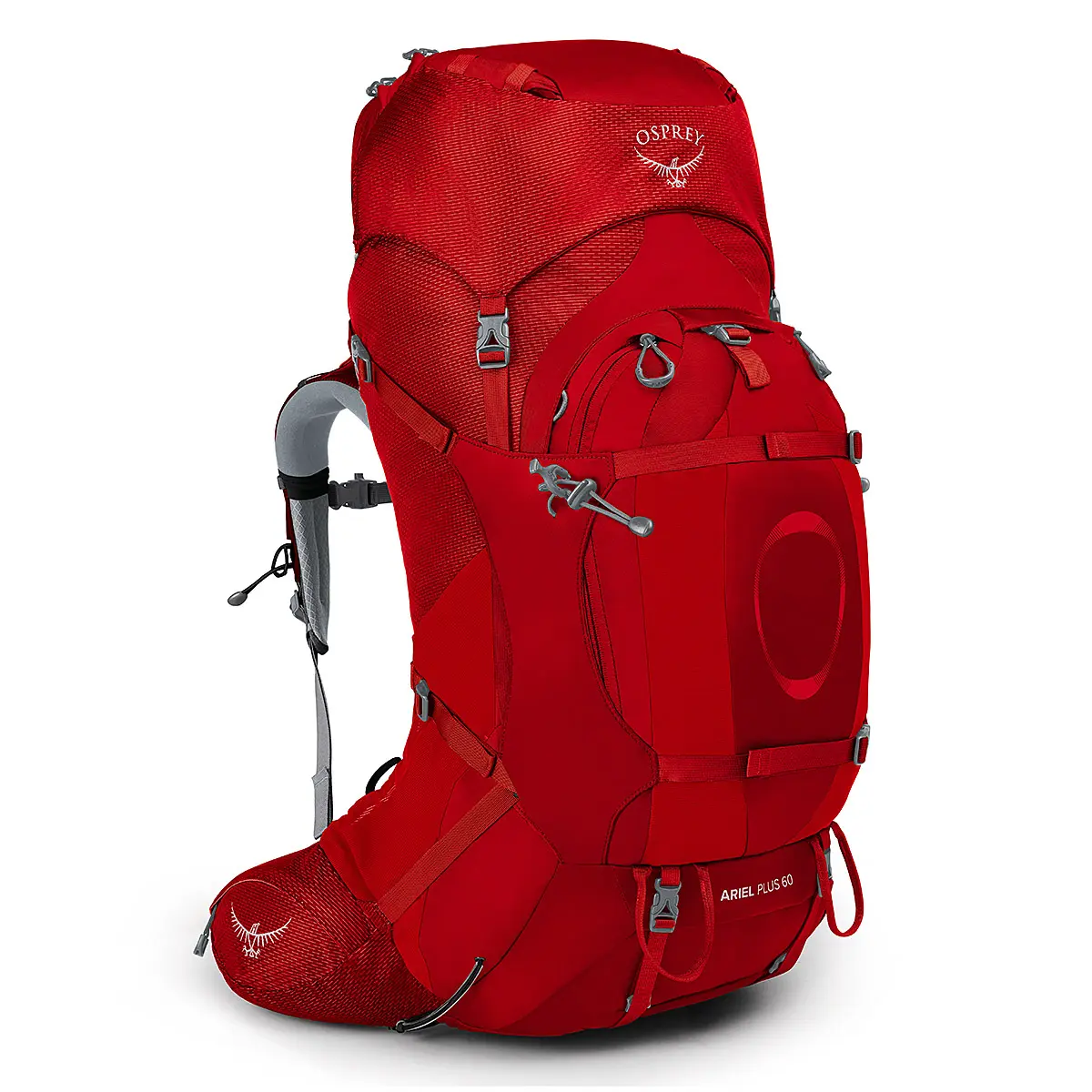 エーリエルプラス60は、山小屋泊の長期縦走や2~3日程度のテント山行など、汎用性の高い女性用バックパックです。ヒップベルトに荷重を効率よく伝えるライトワイヤーペリフェラルフレーム、通気孔を備えた射出成形のダイカットフォームフレームシートが快適な背負い心地を約束します。女性の体型にフィットするショルダーハーネスとヒップベルトは長さと角度を細かく調整することが可能で、デイパックになる着脱式のトップリッドとレインカバーを標準装備しています。