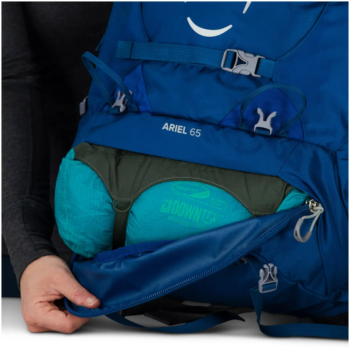 エーリエル65は、1~3泊のテント山行から1週間程度の山小屋泊に適応する、耐久性と軽量さを両立させた女性用バックパックです。肩を包み込むようにフィットするショルダーベルトと、ワイヤーフレームを一体化したヒップベルトは、女性の体型にぴったりフィットする設計になっています。通気孔を開けたエアスケープバックパネルは、快適でバランスのよい背負い心地を実現。荷室へは大型のフロントパネルからの容易なジップアクセスと、最低限必要なギアコンパートメントを装備し、シンプルなデザインながらも使い勝手のよいバックパックです。