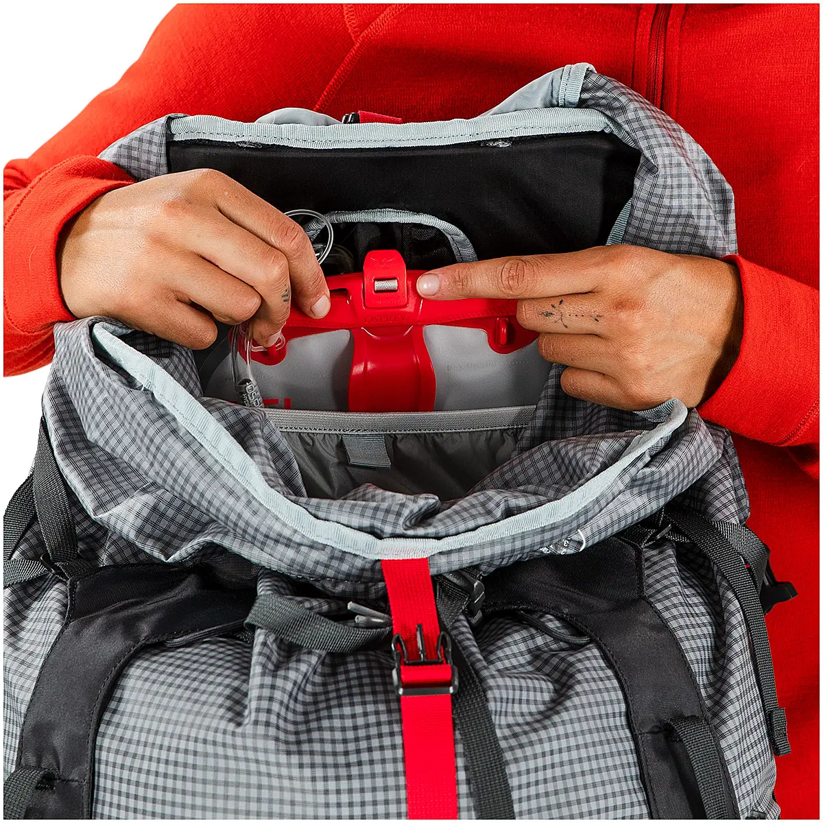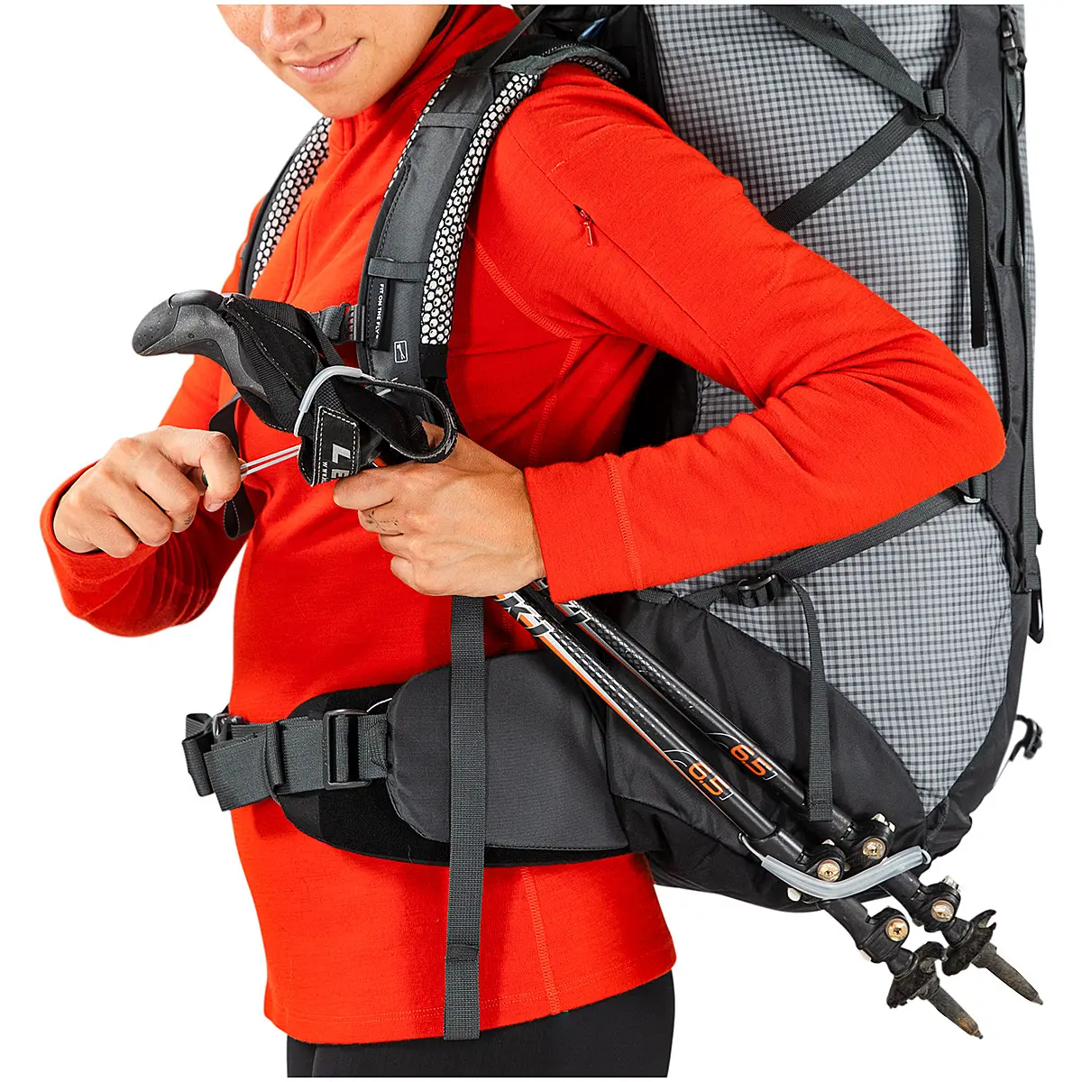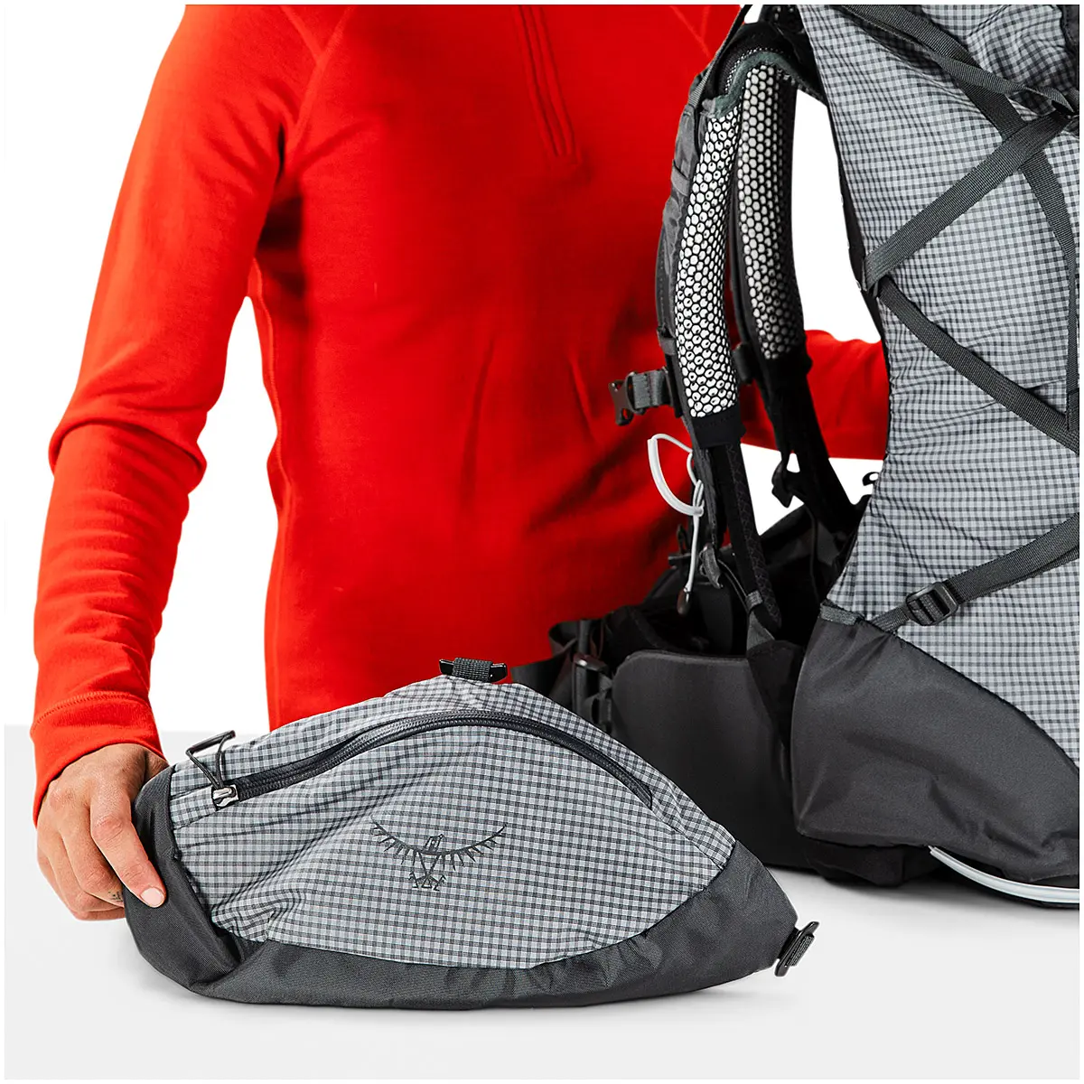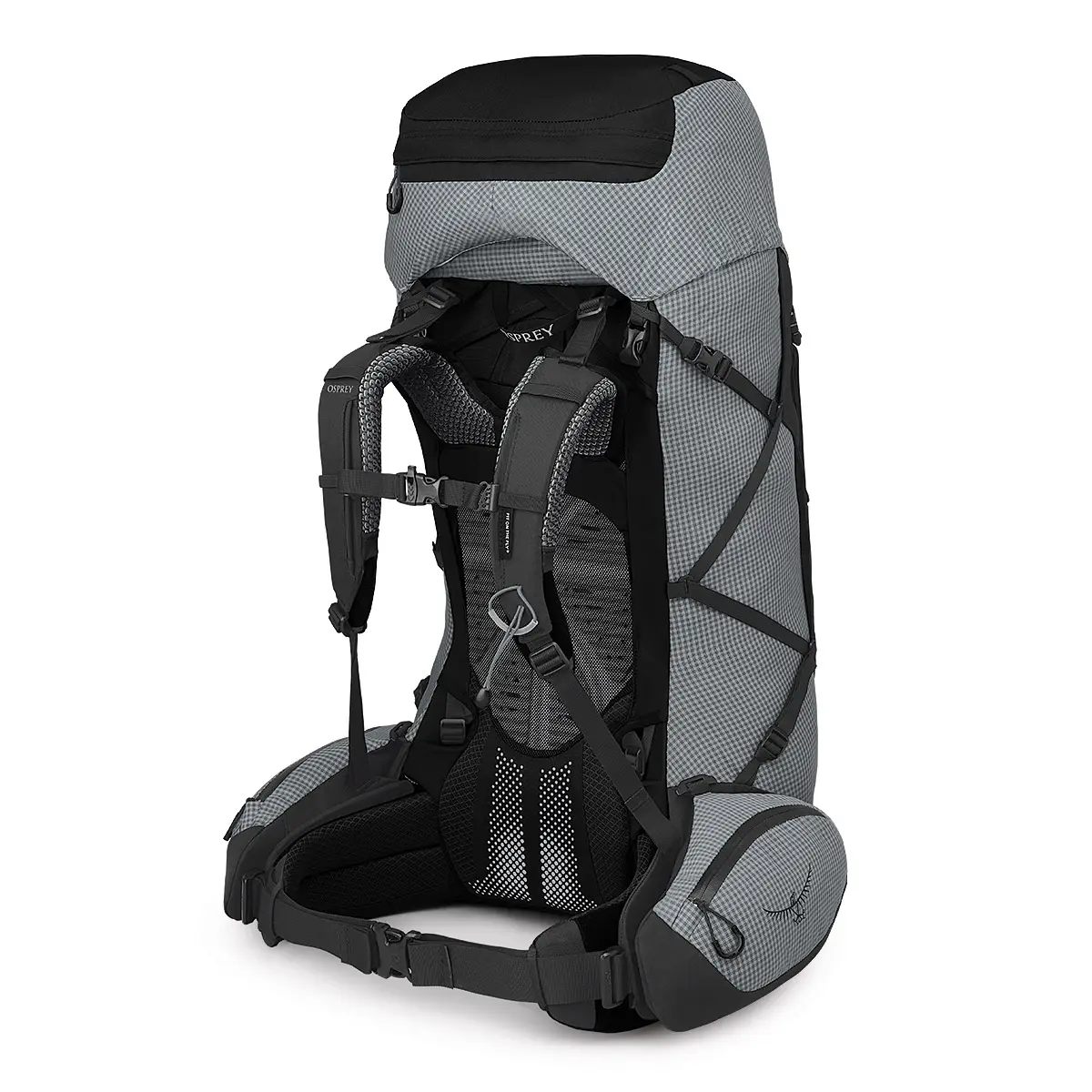 雨蓋やヒップベルトポケット、サイドコンプレッションストラップなどの装備は、取り外して軽量化させることが可能。メインファブリックはナノフライに使用されているUHMWPE(超高分子量ポリエチレン)の糸を3本で格子状に編むことで補強され、過酷な使用にも耐えうる強度と耐久性に優れています。メインの荷室にアクセスしやすいサイドジッパーを備えています。