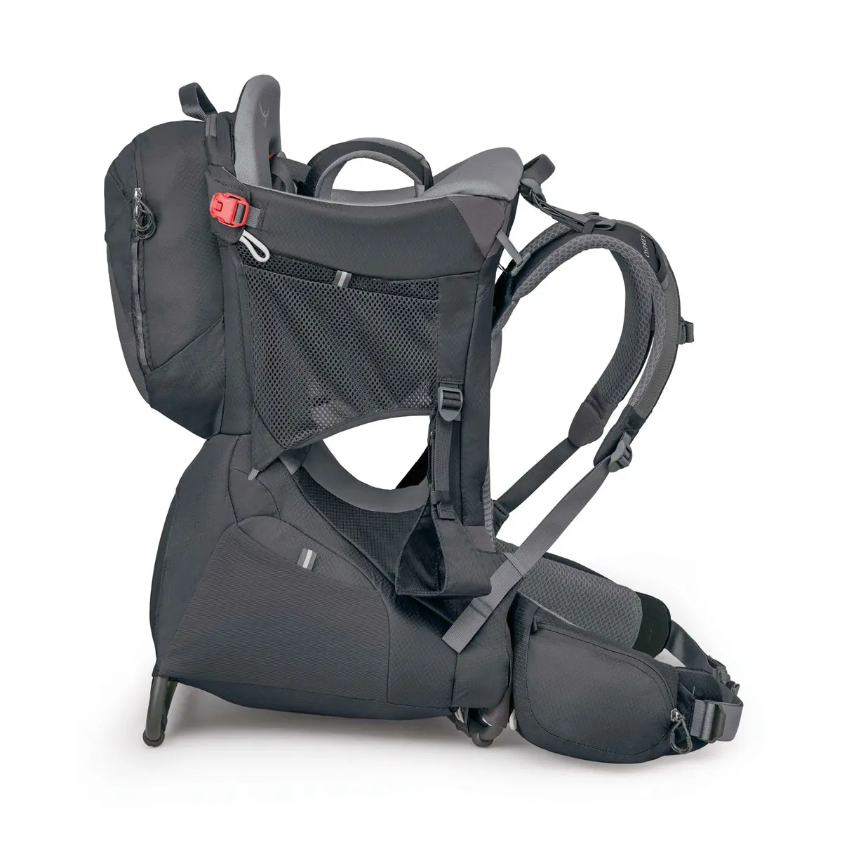 優れた剛性と安定性を発揮する「ポコチャイルドキャリア」に収納容量とポケットをプラスし、さらに幅広いサイズレンジを持たせたプレミアムなモデル。36リットルの収納スペースは着替えやオムツの収納に便利です。