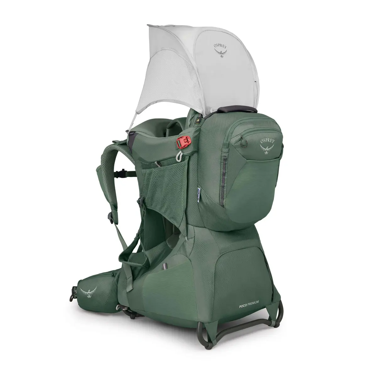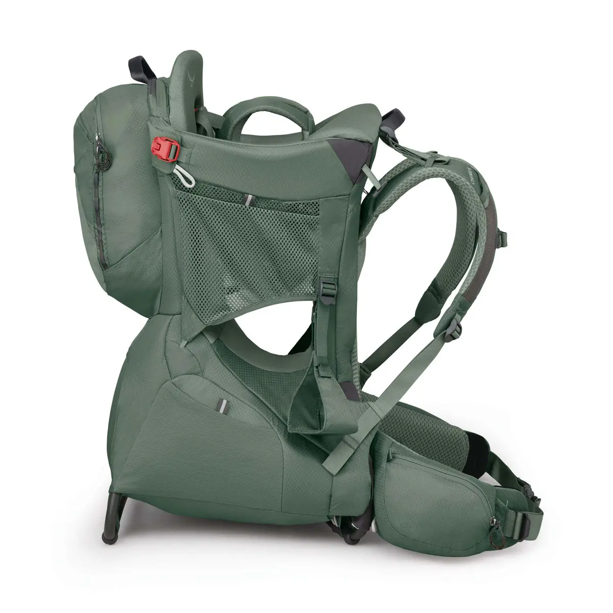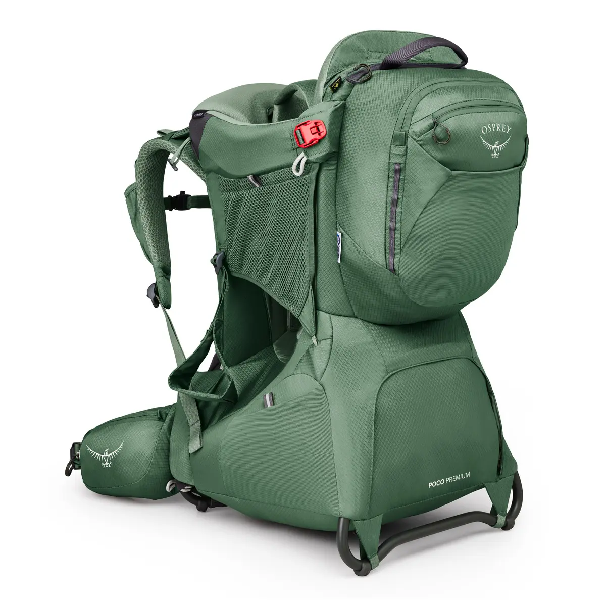 優れた剛性と安定性を発揮する「ポコチャイルドキャリア」に収納容量とポケットをプラスし、さらに幅広いサイズレンジを持たせたプレミアムなモデル。36リットルの収納スペースは着替えやオムツの収納に便利です。