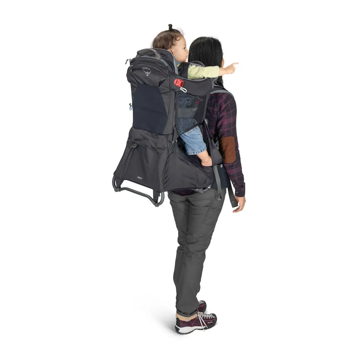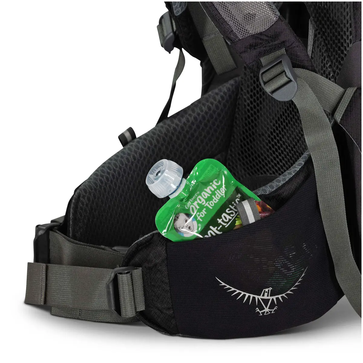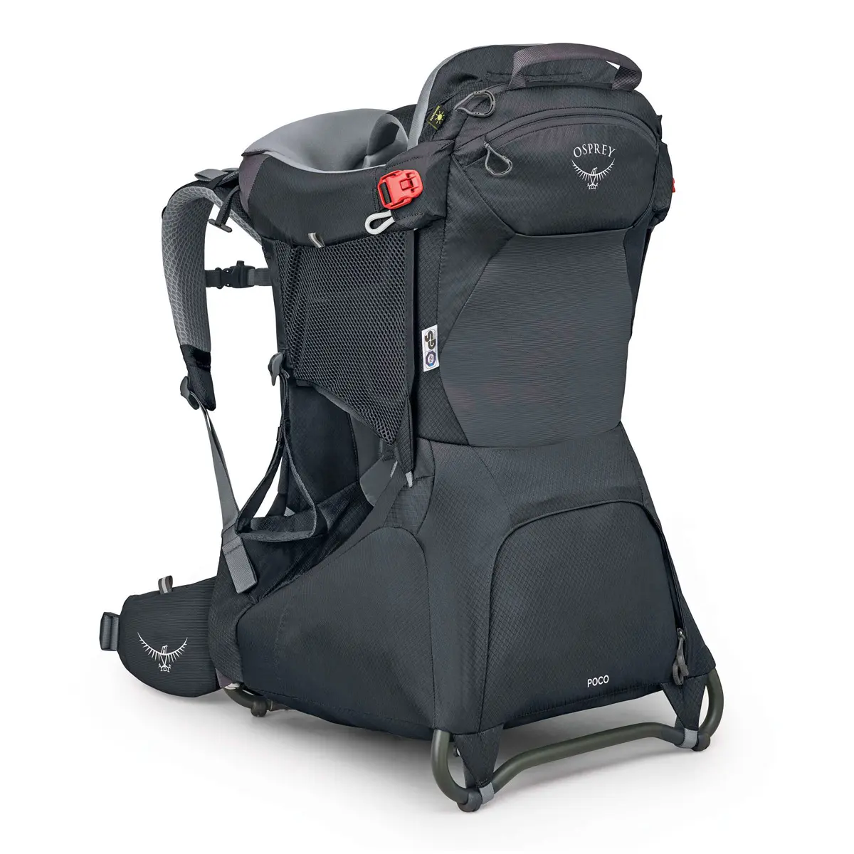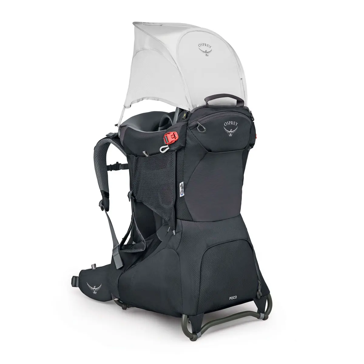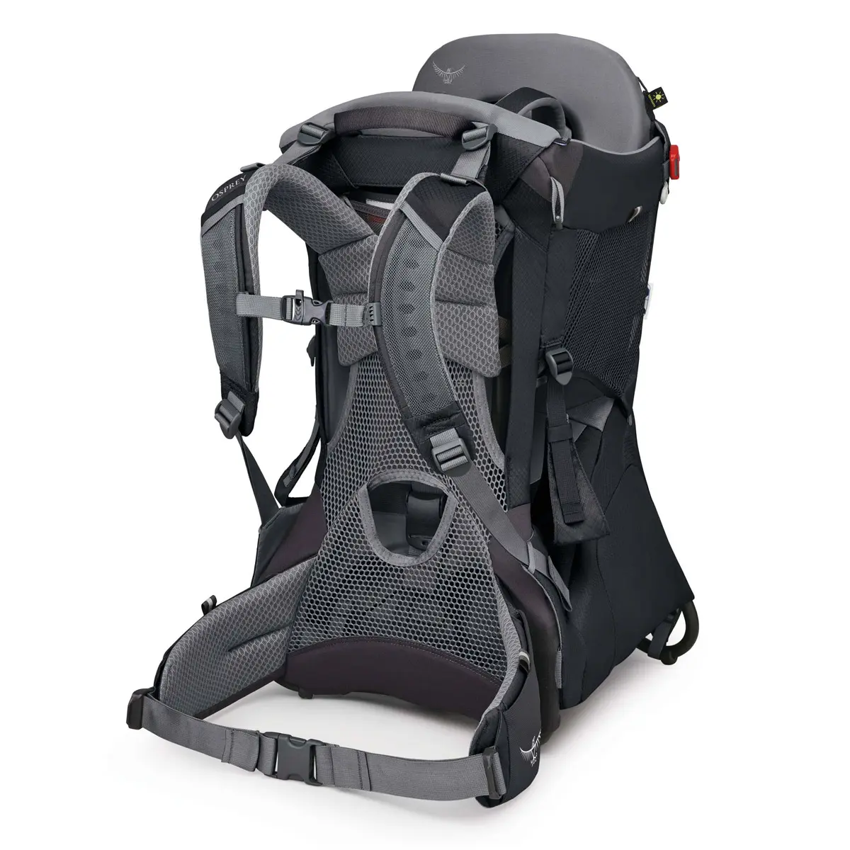 チャイルドシートはフレームとパッド入りで安全性が高く、アウトドアでも安心して子どもを背負うことができます。ソフトな肌触りの生地と、子どもの体格に合わせてフィットする調整機能、通気性の良いサイドメッシュパネルが子どもの快適性を保ちます。よだれパッドは取り外して洗濯が可能。チャイルドセーフティハーネス、シート、フットストラップは子どもの体型に合わせて調整できます。標準装備のビルトインサンシェードは子どもを強い日差しから守るUPF50。ジッパー付き専用ポケットに内蔵されており、素早く展開・収納が可能です。