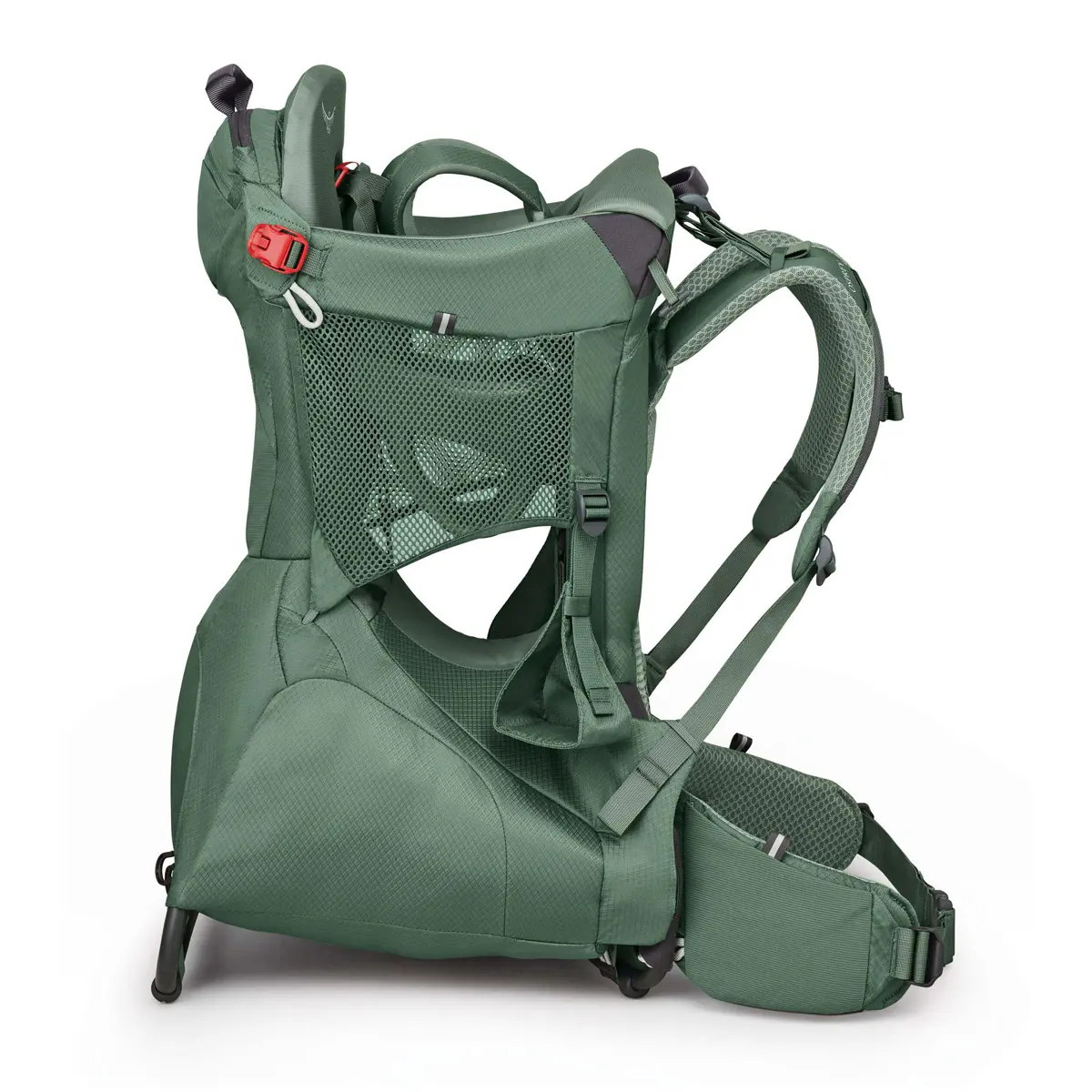 優れた剛性と安定性を発揮するチャイルドキャリア。24リットルの収納スペースは着替えやオムツの収納に便利です。