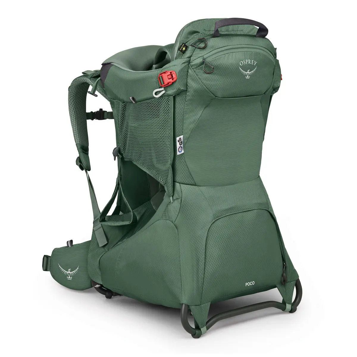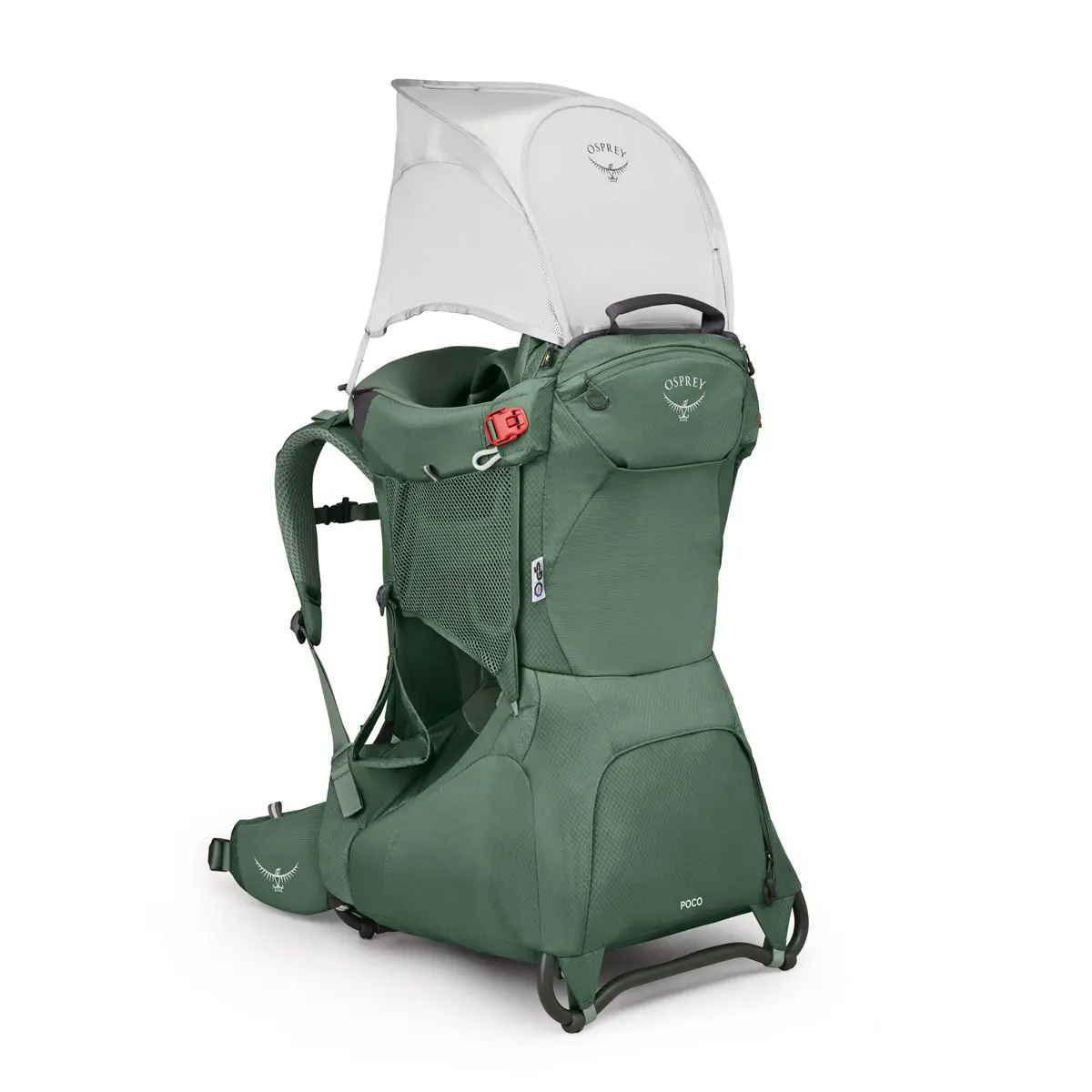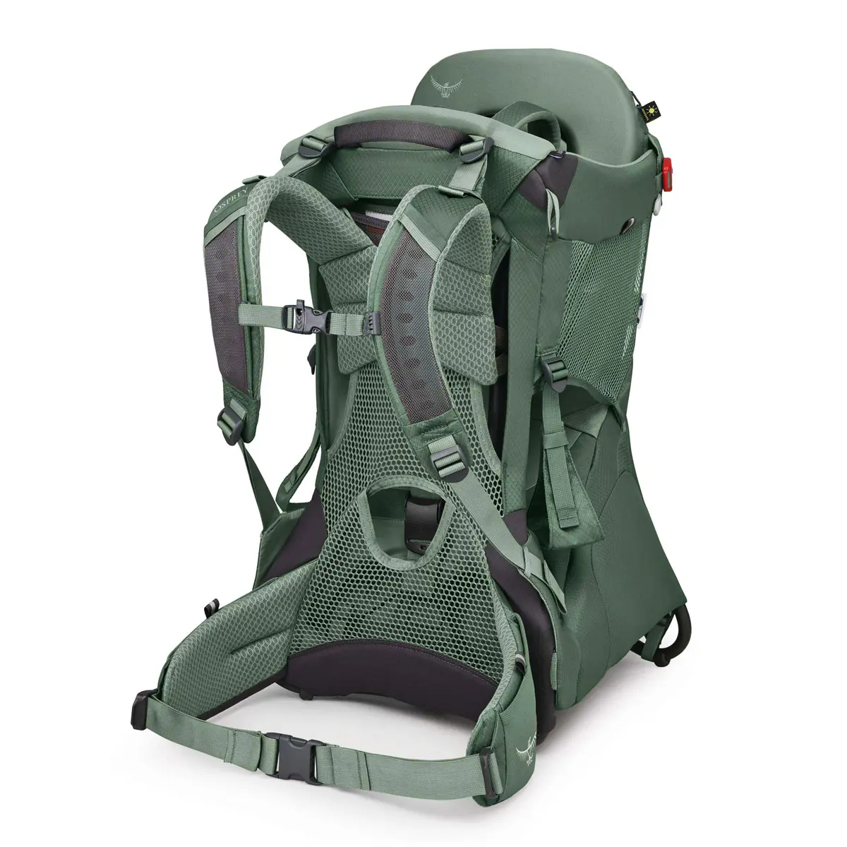 チャイルドシートはフレームとパッド入りで安全性が高く、アウトドアでも安心して子どもを背負うことができます。ソフトな肌触りの生地と、子どもの体格に合わせてフィットする調整機能、通気性の良いサイドメッシュパネルが子どもの快適性を保ちます。よだれパッドは取り外して洗濯が可能。チャイルドセーフティハーネス、シート、フットストラップは子どもの体型に合わせて調整できます。標準装備のビルトインサンシェードは子どもを強い日差しから守るUPF50。ジッパー付き専用ポケットに内蔵されており、素早く展開・収納が可能です。